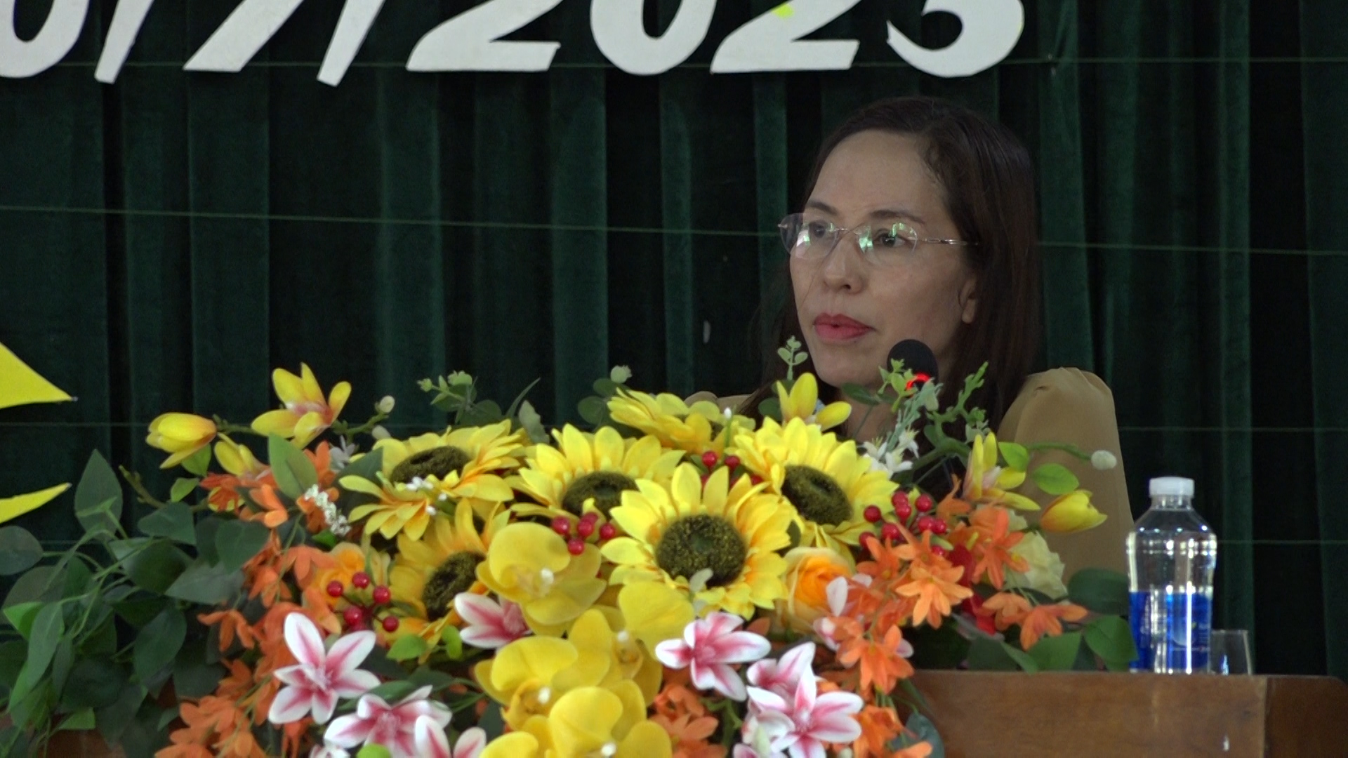 Đ/c Hoàng Thị Phương Nam, Phó Bí thư thường trực Huyện ủy phát biểu tại Hội nghị