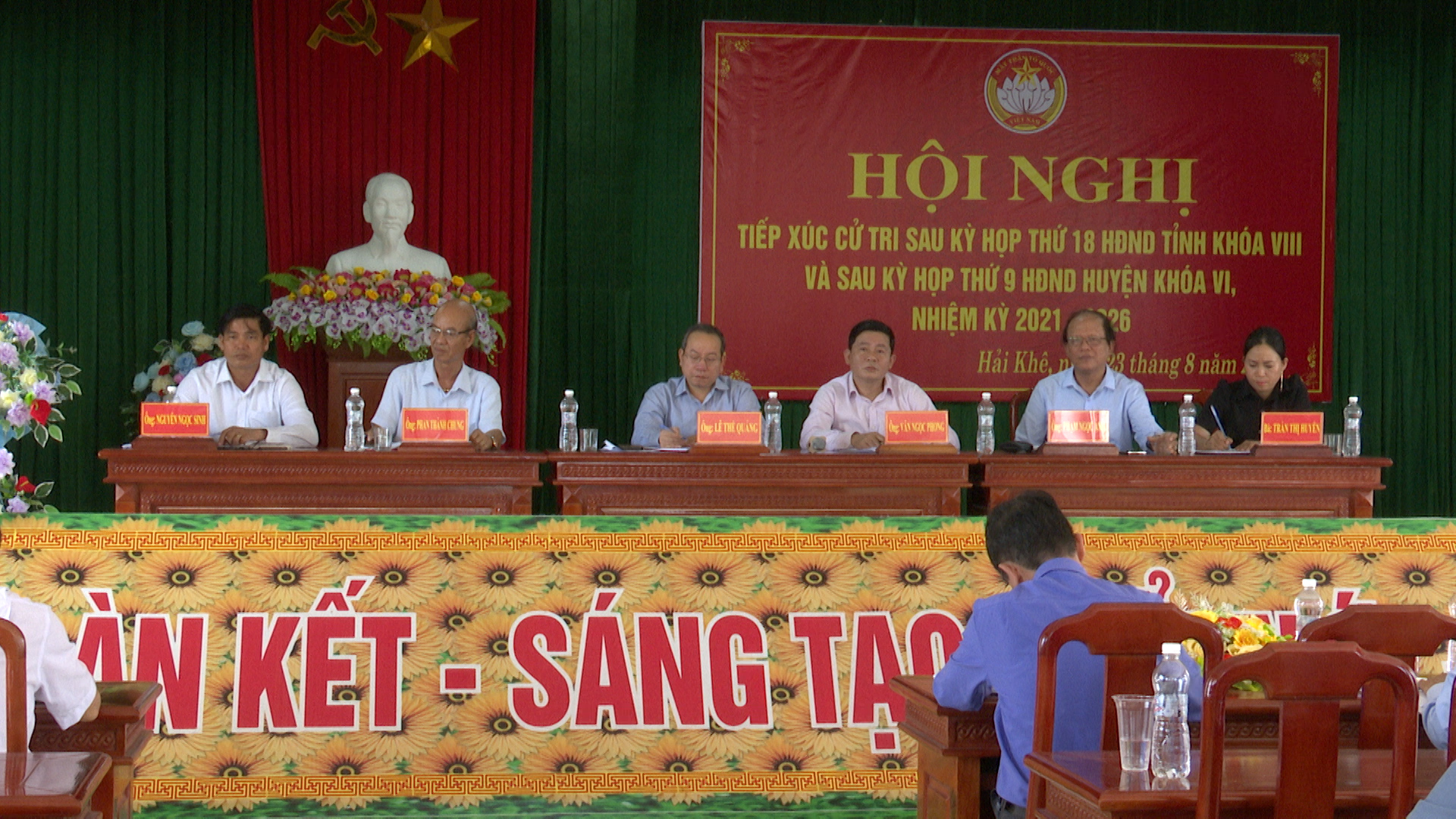 Tại các buổi tiếp xúc, sau khi nghe đại biểu HĐND tỉnh, huyện báo cáo tình hình KT-XH tỉnh, huyện 6 tháng đầu năm và kết quả kỳ họp HĐND tỉnh lần thứ 18, kỳ họp HĐND huyện lần thứ 9, cử tri các địa phương đã kiến nghị với đại biểu HĐND tỉnh những vấn đề bức xúc, tồn tại ở địa phương. Trong đó, cử tri xã Hải Khê phản ánh tình trạng thiếu vắc xin tiêm phòng cho trẻ em, tuyến đường quốc phòng ven biển từ xã Hải An đến xã Hải Khê xuống cấp, phân bổ nguồn vốn xây dựng nông thôn mới chưa đồng đều giữa các địa phương. Đặc biệt, nhiều cử tri kiến nghị các cấp nghiên cứu thận trọng khi triển khai dự án xã thải từ cụm công nghiệp Diên Sanh về vùng biển xã Hải Khê. Một vấn đề khác được cử tri xã Hải Khê nhiều lần kiến nghị đó là nhu cầu tách thửa, tách hộ, xây dựng nhà ở gặp nhiều khó khăn do nằm trong vùng quy hoạch Khu Kinh tế Đông Nam. Vấn đề này đã có chủ trương cho phép xây dựng nhưng khi giải phóng mặt bằng thì sẽ không được đền bù, người dân cho rằng như thế thì không ai dám đầu tư để xây dựng, sửa chữa nhà ở. Cử tri xã Hải Lâm phản ánh tình trạng dự án đưa điện lên vùng gò đồi, miền núi tại thôn Xuân Lâm và thôn Tân Phước đã gần 3 năm nhưng chưa có điện cho bà con nhân dân; dự án khai thác nạo vét lòng hồ Khe Rò để tăng dung tích chứa, tuy nhiên người dân phản ánh hồ bị nạo vét quá sâu so với cống thoát nước; đường lên thôn Tân Phước nối với cao tốc Cam Lộ - La Sơn có nhiều xe tải quá tải trọng thường xuyên đi ngang, gây khói bụi ô nhiễm cho người dân trong khu vực, khiến đường nhanh chóng xuống cấp; trụ cáp quang của các nhà mạng viễn thông Vietel và VNPT ảnh hưởng đến sản xuất của người dân và chỉnh trang NTM của xã. Cử tri thị trấn Diên Sanh kiến nghị cần nâng cao chế độ cho nhân viên dinh dưỡng ở các trường mầm non; các ngành chức năng cần tăng cường xử lý các điểm nóng về an toàn giao thông trên địa bàn, tình hình tín dụng đen diễn ra khá phức tạp…