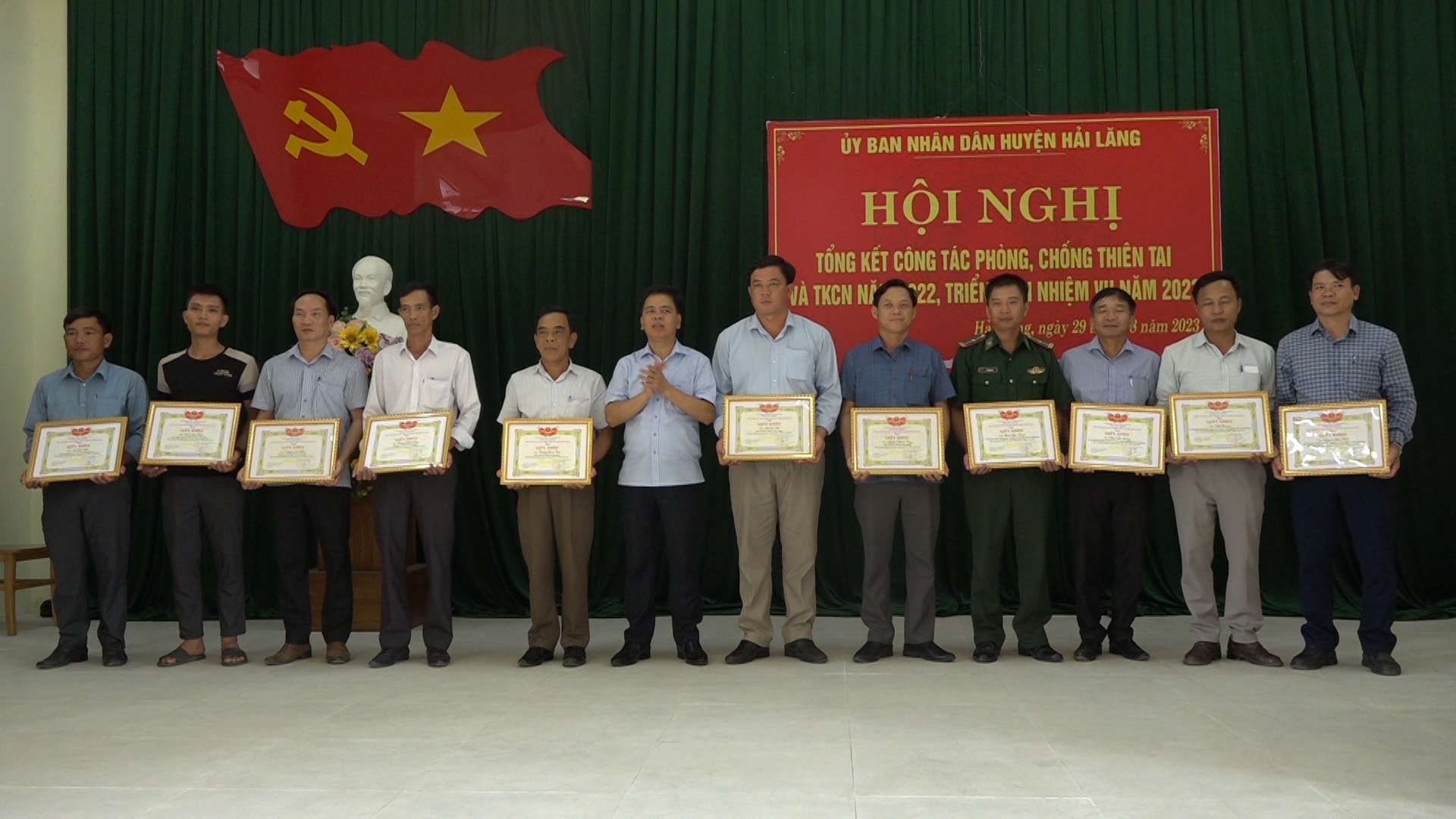 Dịp này, UBND huyện Hải Lăng đã tặng giấy khen, khen thưởng cho 8 tập thể và 12 cá nhân có thành tích xuất sắc trong công tác PCTT&TKCN năm 2022-2023./.