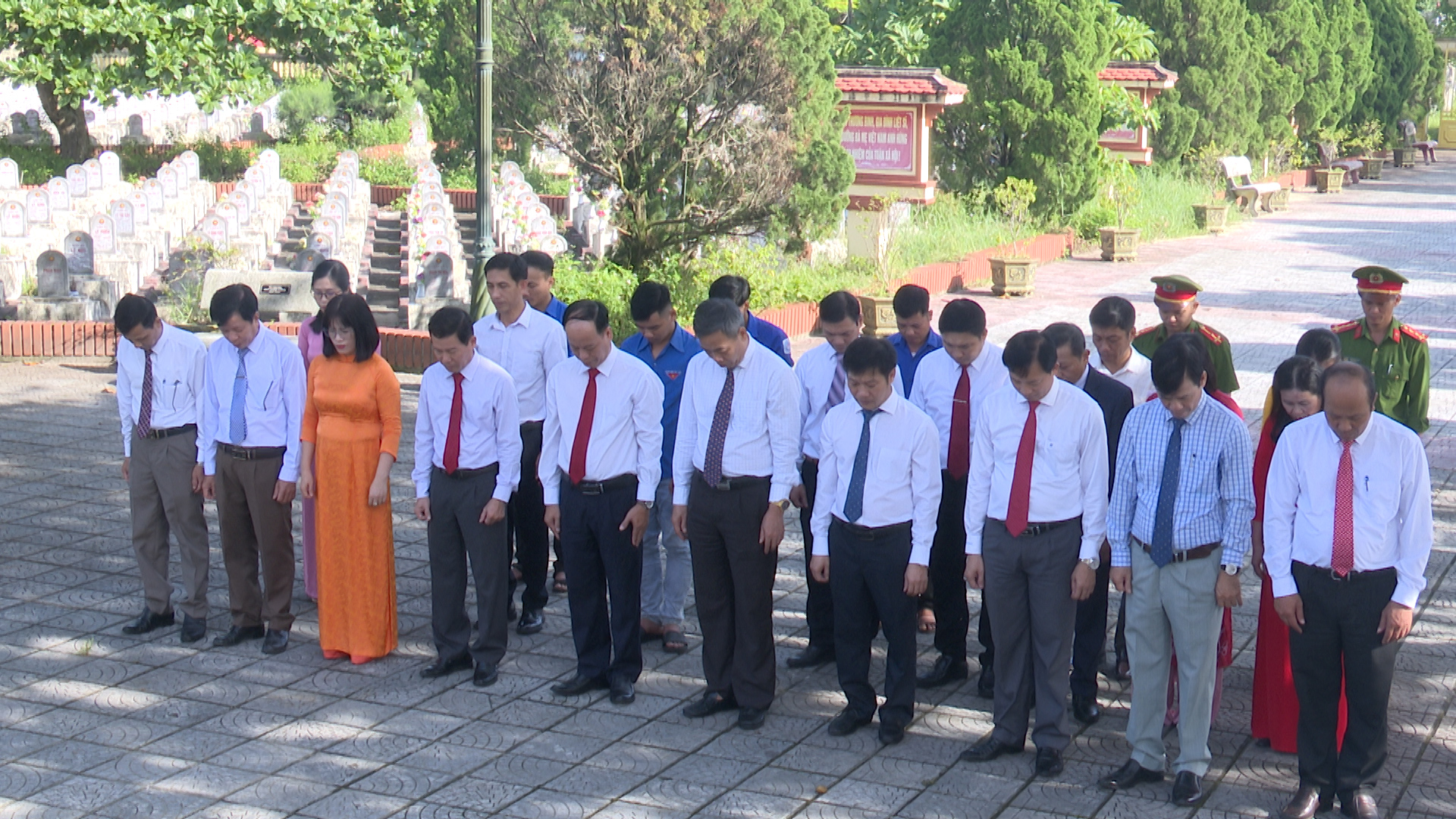 Các đ/c lãnh đạo dành phút mặc niệm tưởng nhớ các anh hùng liệt sỹ tại nghĩa tran liệt sỹ xã Hải Thượng