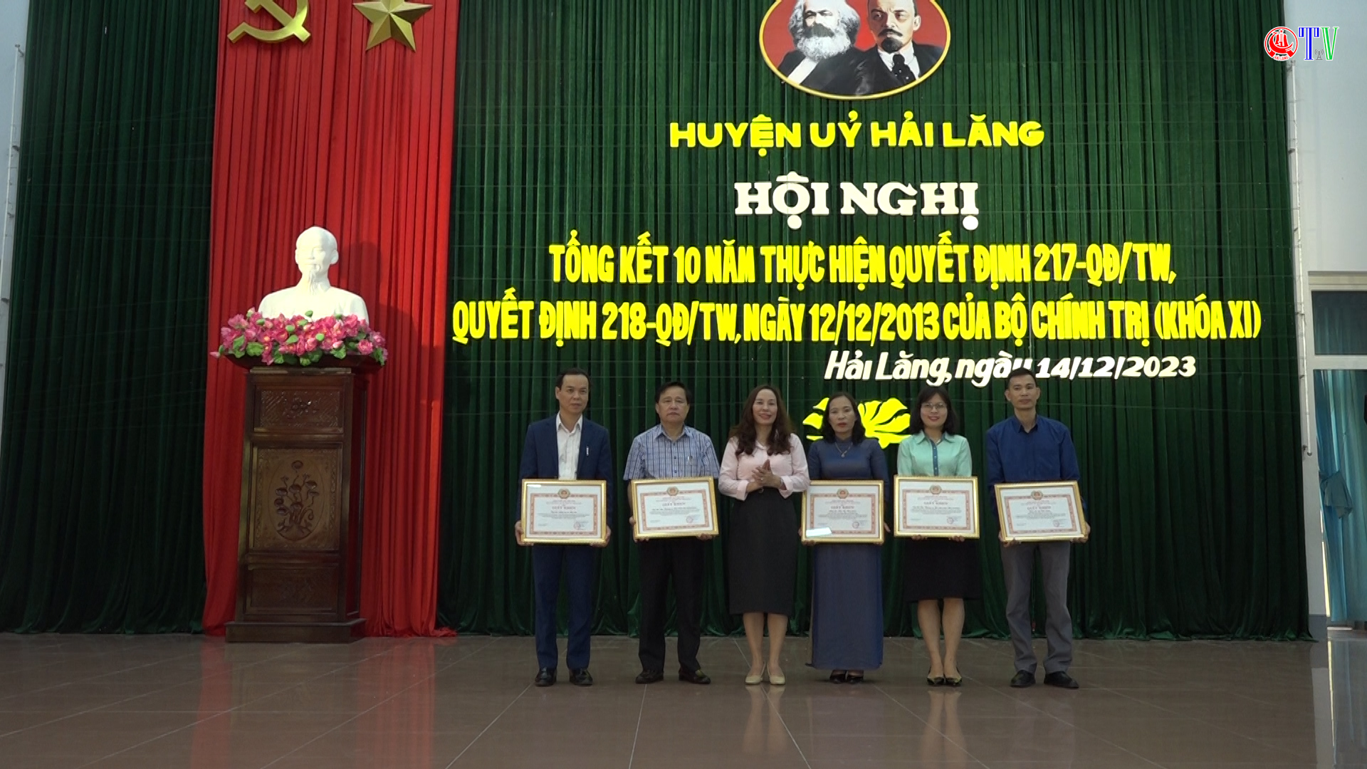 Dịp này, 5 tập thể và 5 cá nhân có thành tích xuất sắc trong thực hiện Quyết định 217, 218 của Bộ Chính trị đã được BTV Huyện ủy Hải Lăng tặng giấy khen.