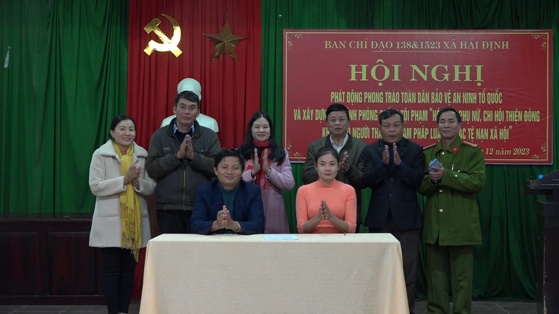 Chiều 23/12, Ban chỉ đạo 138 & 1523 xã Hải Định tổ chức hội nghị phát động phong trào toàn dân bảo vệ an ninh Tổ quốc và xây dựng mô hình phòng chống tội phạm “Hội viên phụ nữ chi hội Thiện Đông không có người thân vi phạm pháp luật và các tệ nạn xã hội.”