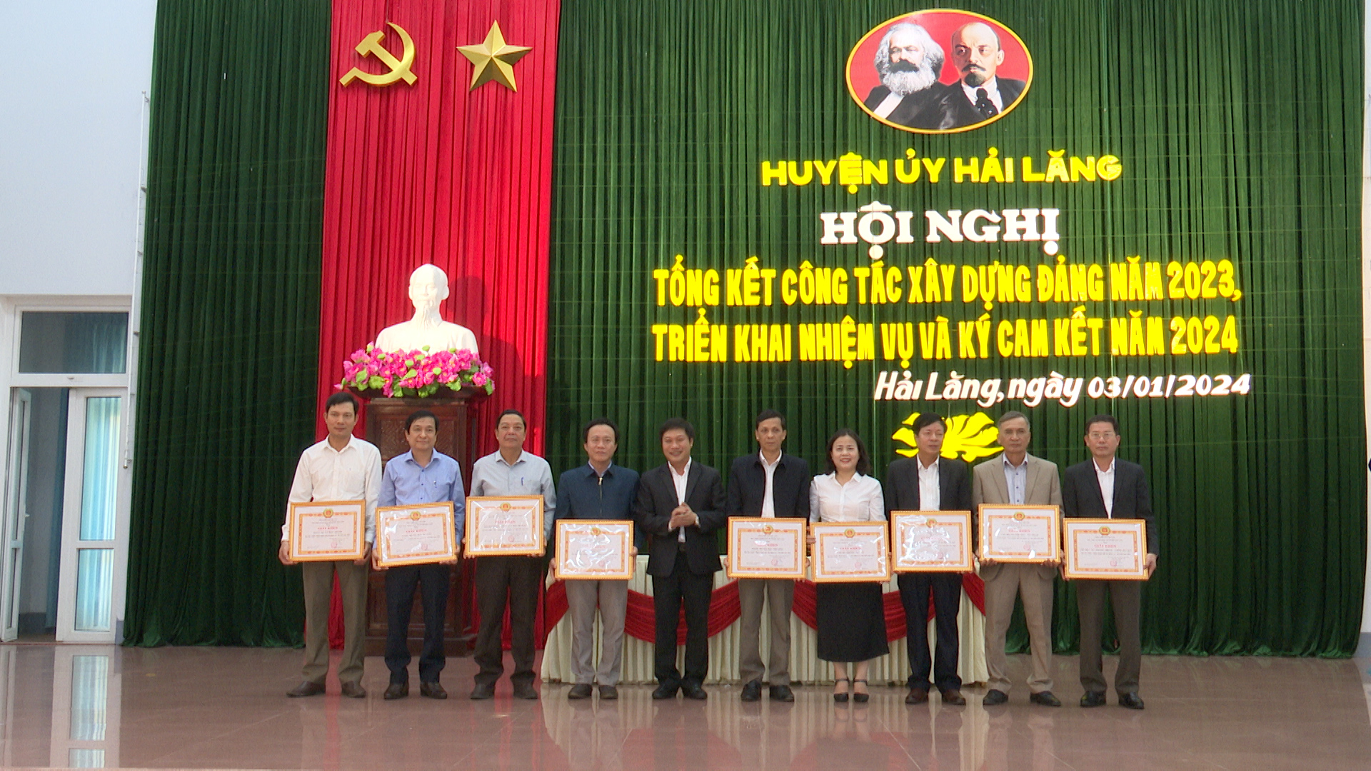 Trong dịp này, Huyện ủy Hải Lăng đã tặng Giấy khen cho nhiều tập thể, cá nhân có thành tích xuất sắc trong công tác xây dựng Đảng năm 2023 và khen thưởng 19 đảng viên hoàn thành xuất sắc nhiệm vụ 5 năm liền giai đoạn 2019-2023.