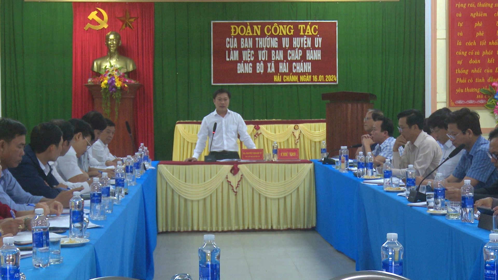 Ngày 16/01/2024, đồng chí Nguyễn Khánh Vũ-TUV, Bí thư Huyện ủy đã chủ trì Hội nghị làm việc giữa Ban Thường vụ Huyện ủy với Đảng ủy xã Hải Chánh về kết quả thực hiện nhiệm vụ năm 2023 và cho ý kiến chương trình công tác trọng tâm năm 2024. Cùng tham dự Hội nghị làm việc có các đồng chí trong Ban Thường vụ Huyện ủy, Lãnh đạo các Ban đảng, UBND huyện và các cơ quan chuyên môn cấp huyện liên quan.