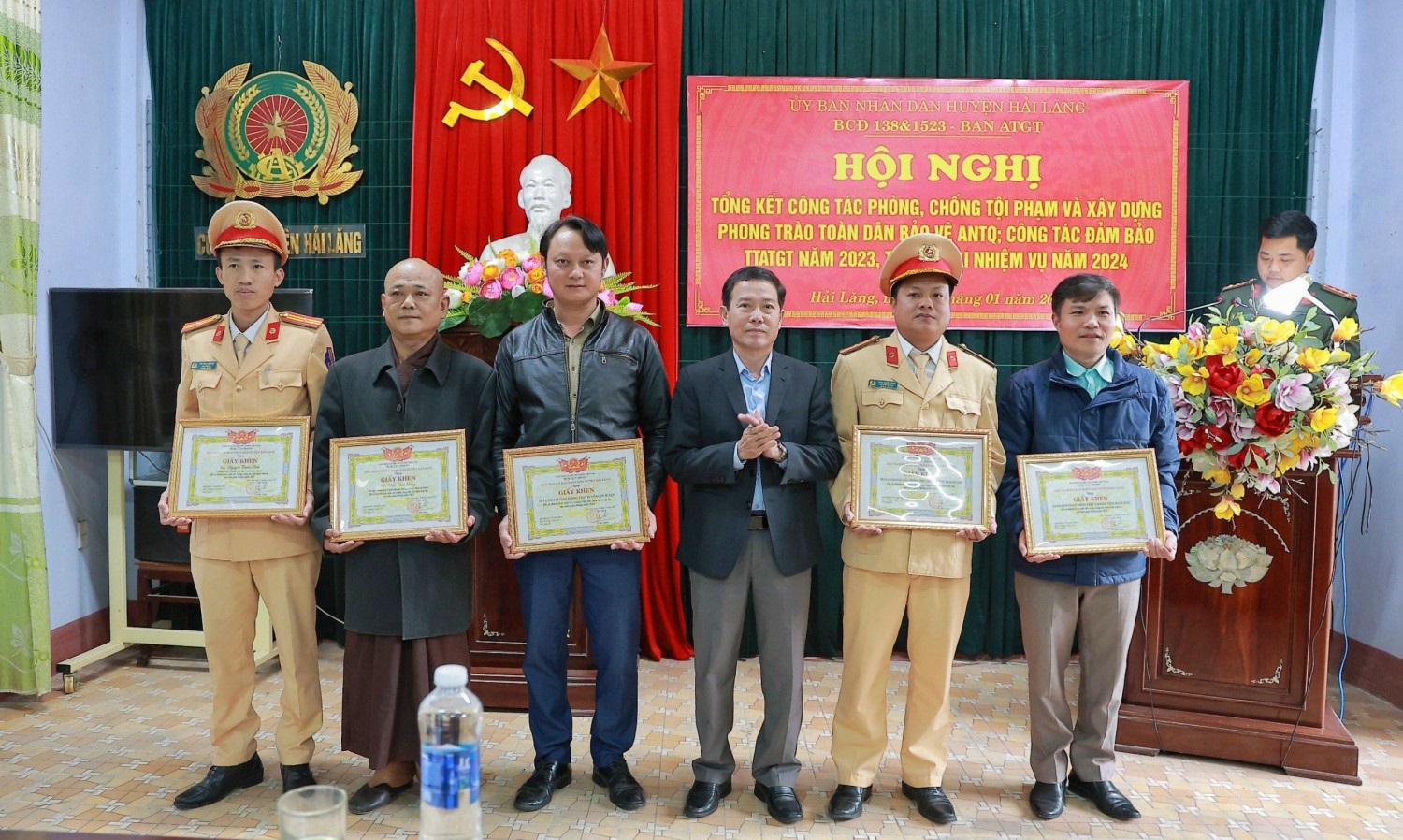Dịp này, UBND huyện Hải Lăng đã tặng giấy khen cho các tập thể và cá nhân có thành tích xuất sắc trong công tác đảm bảo trật tự, an toàn giao thông năm 2023.