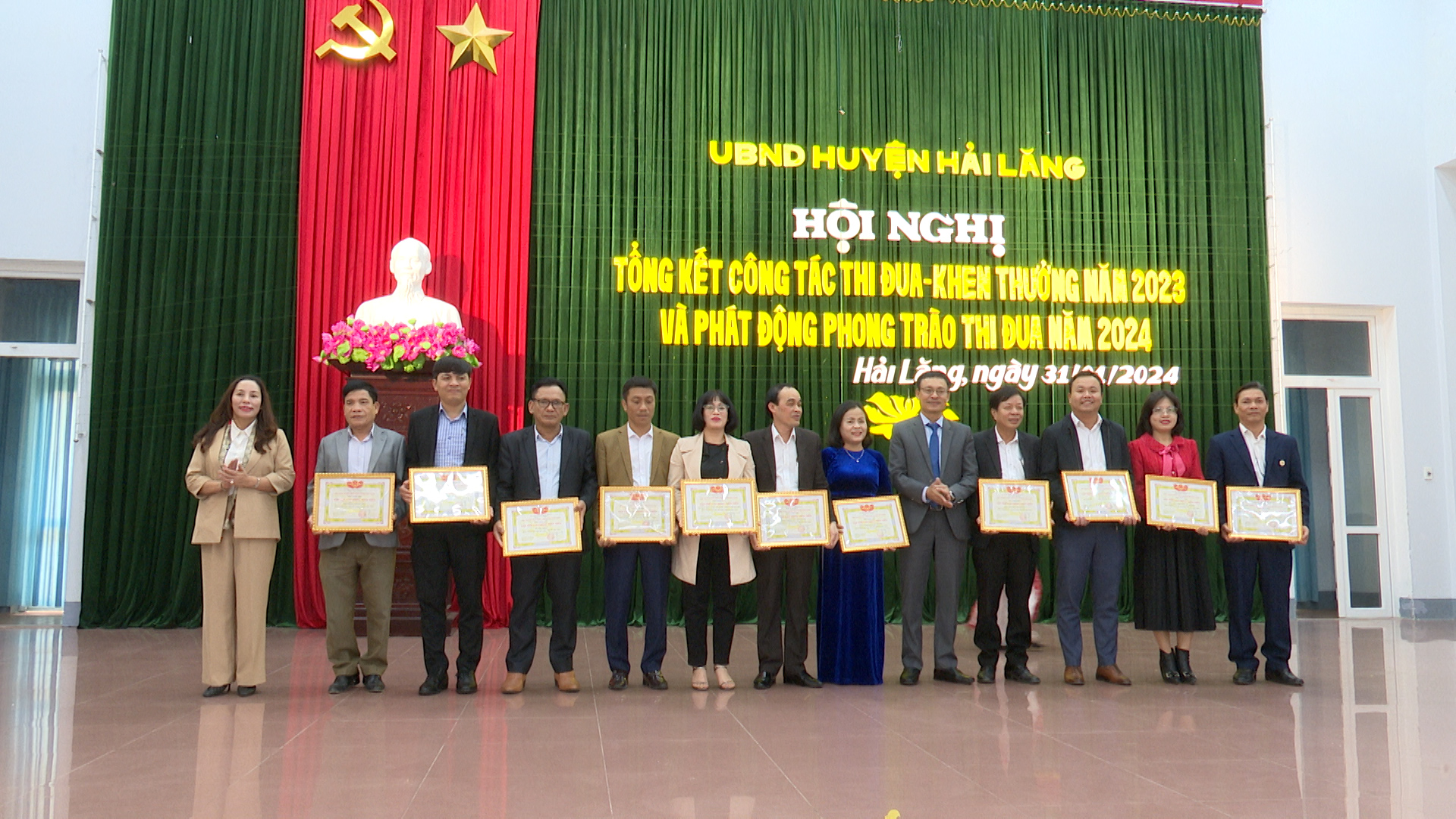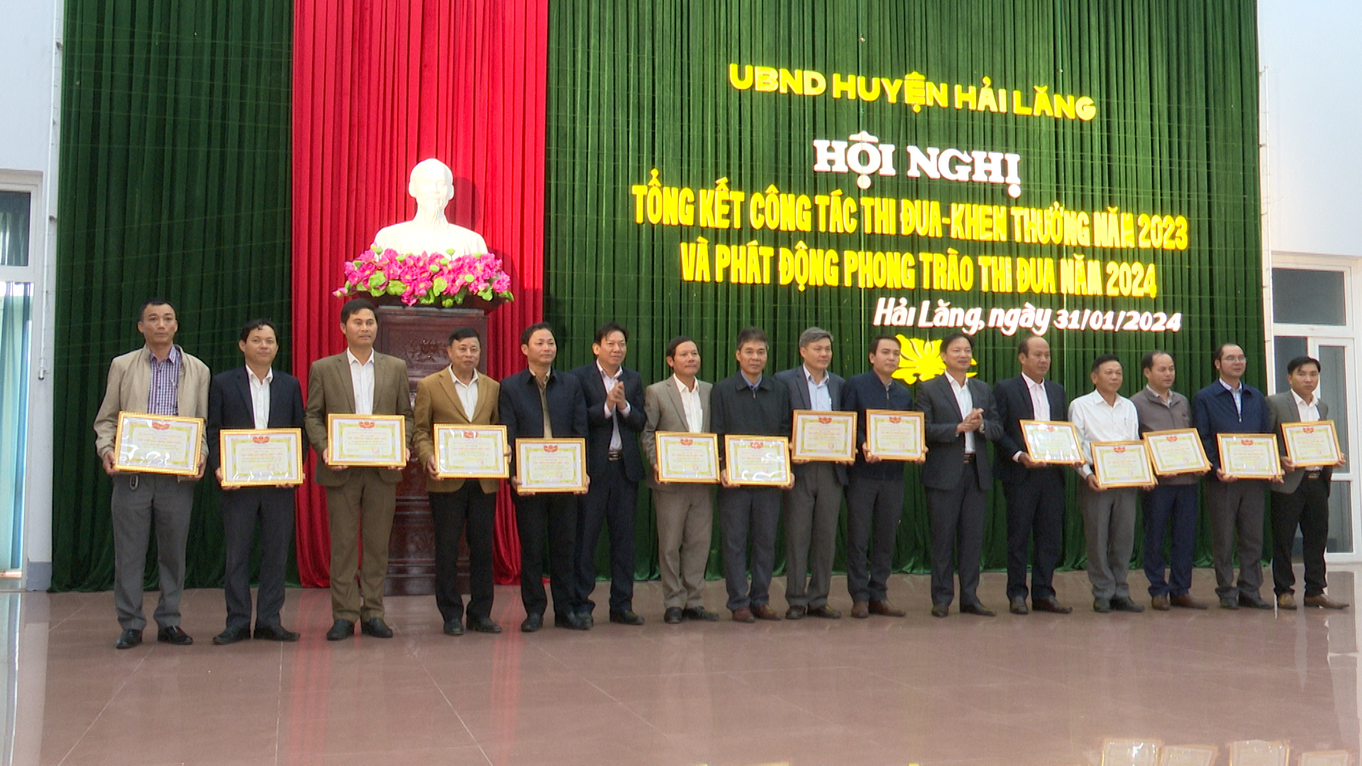 Ngày 31/01, huyện Hải Lăng tổ chức Hội nghị tổng kết công tác thi đua, khen thưởng; biểu dương các tổ chức, cá nhân thực hiện tốt chính sách, pháp luật thuế năm 2023 và phát động phong trào thi đua yêu nước năm 2024.
