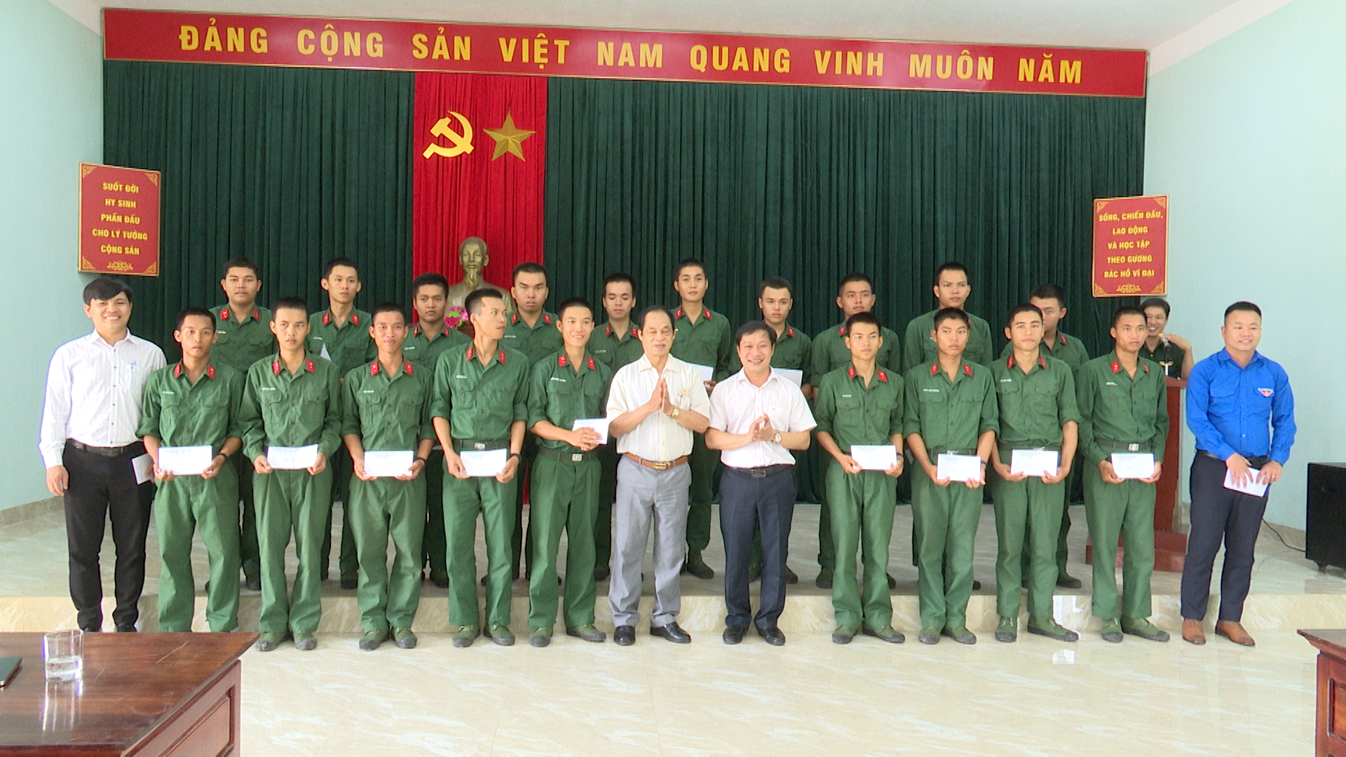 Lãnh đạo huyện tặng quà cho các chiến sĩ mới