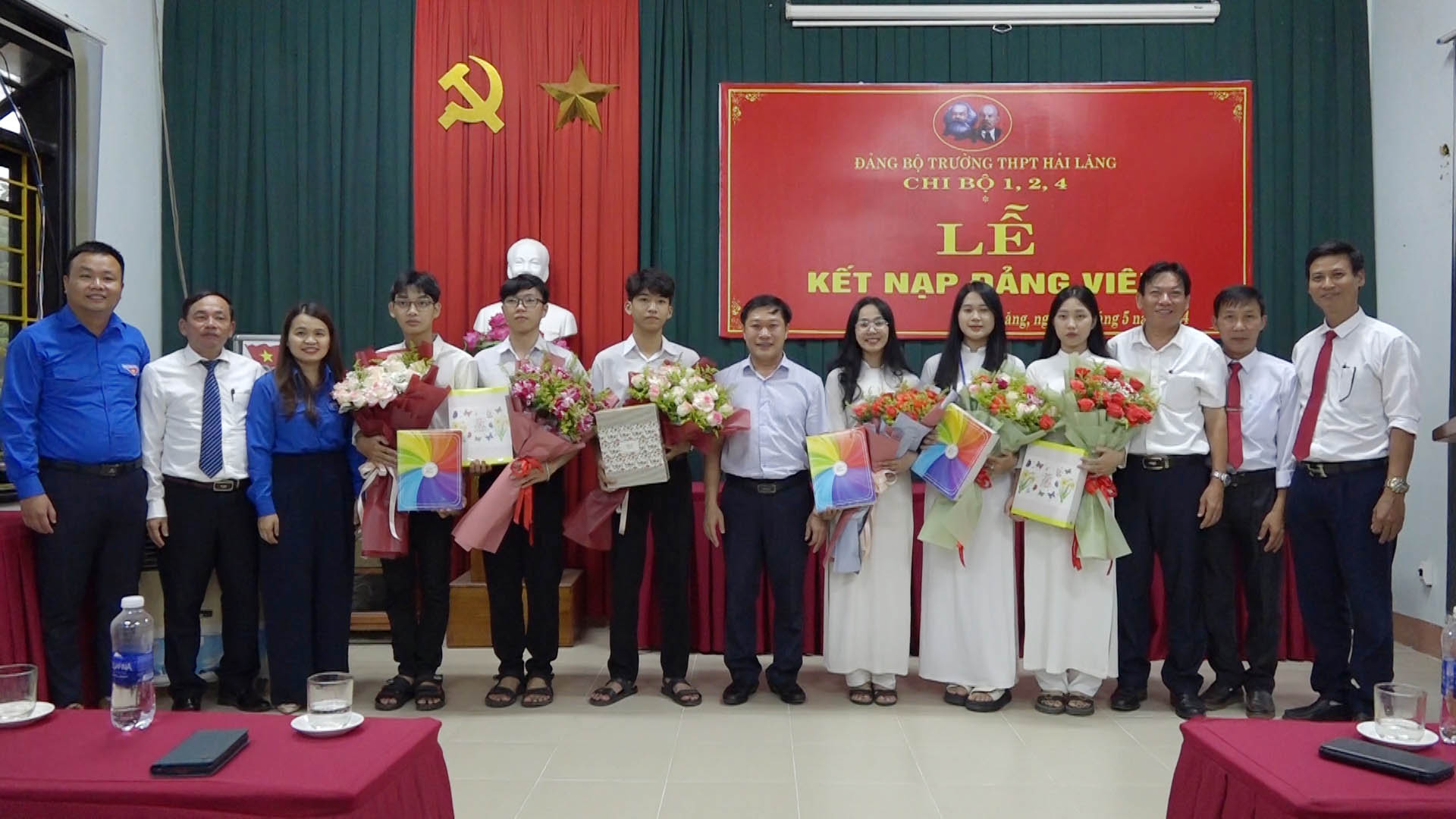 Tại buổi lễ, Bí thư các Chi bộ 1, 2 và 4 đã đọc Quyết định kết nạp Đảng viên của Ban Thường vụ Huyện ủy Hải Lăng đối với các quần chúng: Hoàng Thị Anh Tú (Chi đoàn 12B2) và Lê Nguyễn Kiều Linh (Chi đoàn 12B2) thuộc Chi bộ 1; Phan Hữu Thắng (Bí thư Chi đoàn 12B3) và Nguyễn Đăng Anh Dũng (Bí thư Chi đoàn 12B4) thuộc Chi bộ 2; Nguyễn Thị Diệu Trinh (Bí thư Chi đoàn 12B5) và Nguyễn Trí Quyết Đạt (Bí thư Chi đoàn 12B8) thuộc Chi bộ 4. Đây là những học sinh tiêu biểu, những đoàn viên ưu tú trong các hoạt động của nhà trường, các em có kết quả học tập, rèn luyện đạt loại giỏi trở lên, có đạo đức tốt, lối sống giản dị, mẫu mực, là những cán bộ đoàn, cán sự lớp năng nổ, nhiệt tình, thực sự là tấm gương sáng trong học sinh toàn trường.