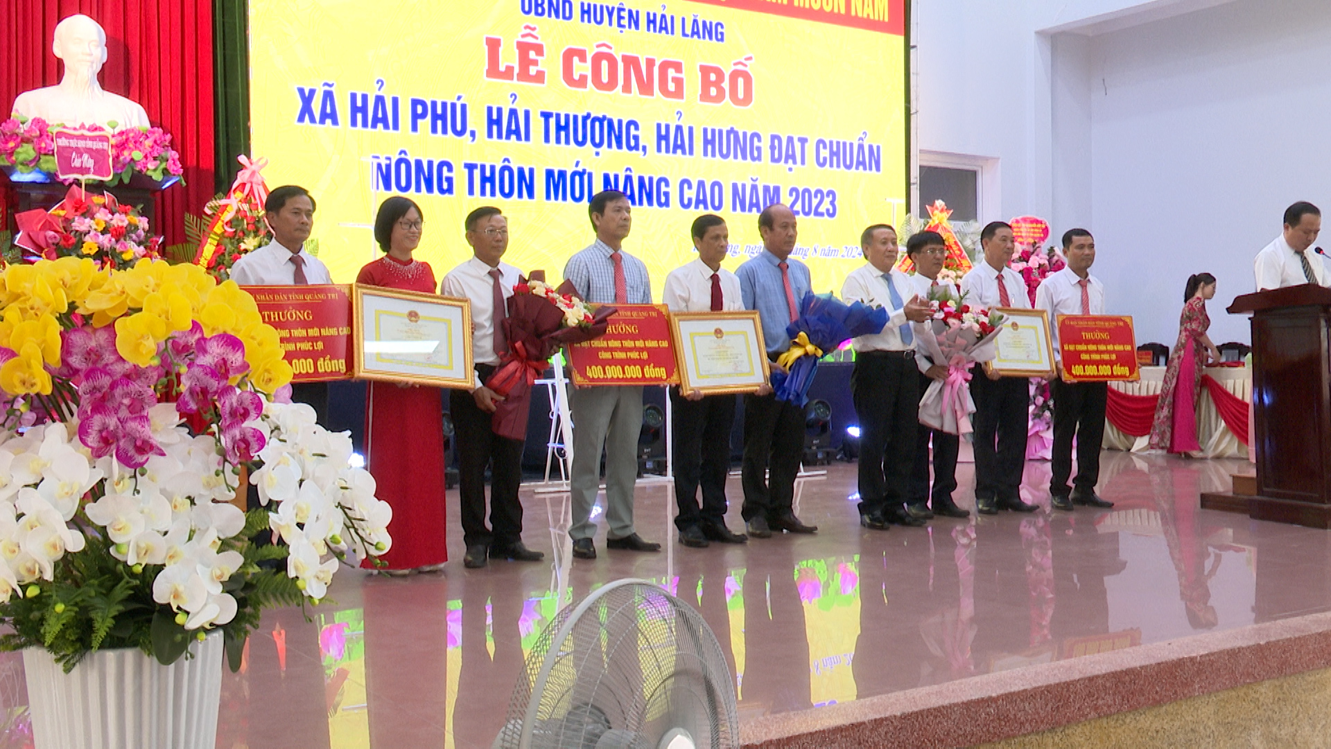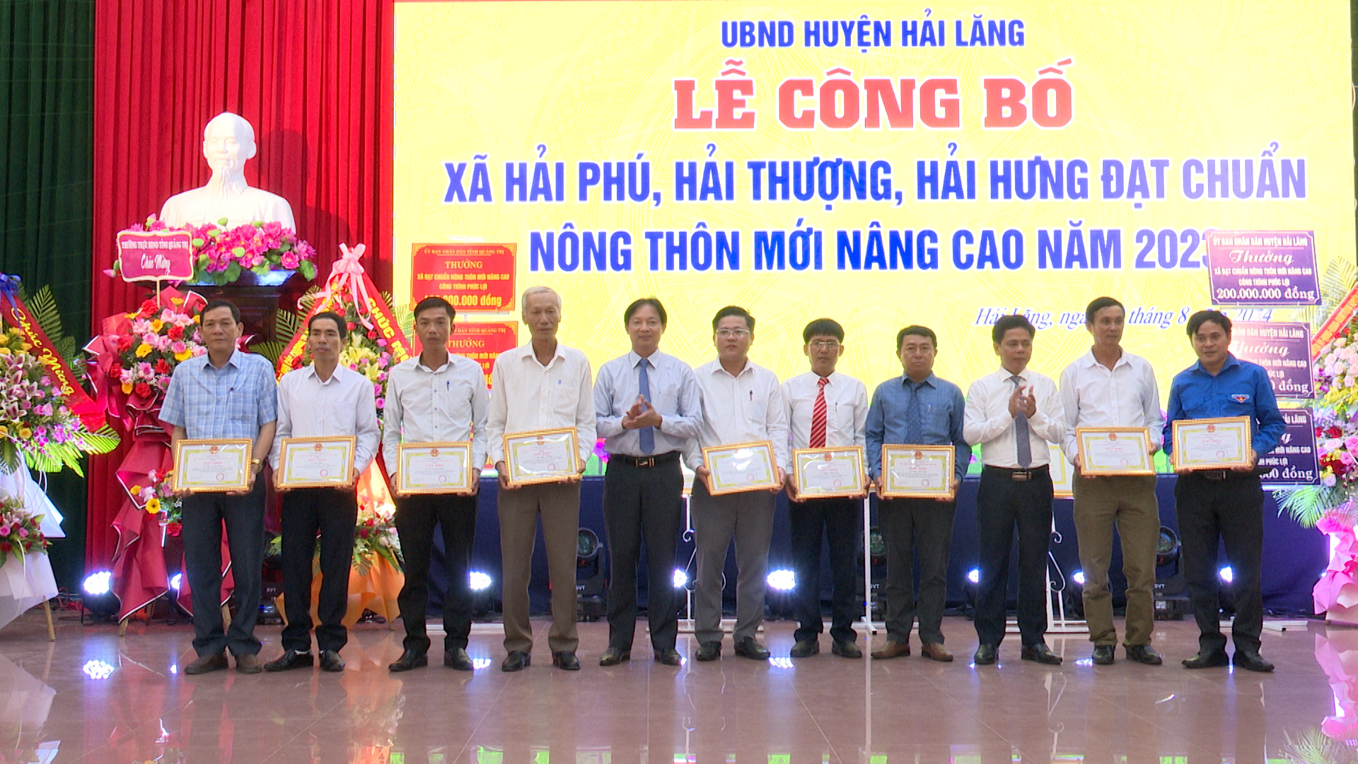 Bước vào xây dựng NTM nâng cao với lộ trình cụ thể cùng quyết tâm cao của cả hệ thống chính trị và toàn thể Nhân dân, đến cuối năm 2023, các xã Hải Phú, Hải Thượng, Hải Hưng đã hoàn thành 19/19 tiêu chí xã NTM nâng cao và được UBND tỉnh công nhận, góp phần vào mục tiêu xây dựng huyện Hải Lăng đạt chuẩn huyện NTM.