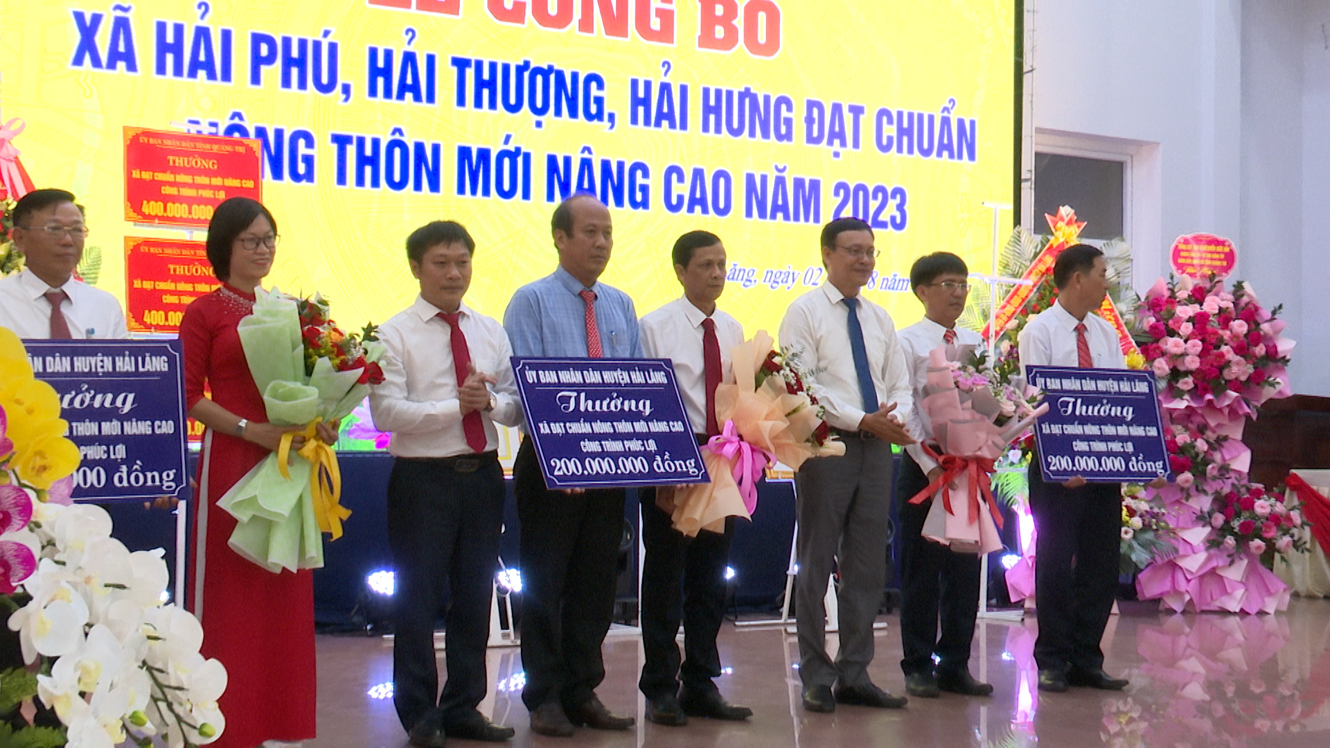 Dịp này, Phó Chủ tịch Thường trực UBND tỉnh Hà Sỹ Đồng đã trao Quyết định của Chủ tịch UBND tỉnh công nhận xã đạt chuẩn NTM nâng cao năm 2023 cho các xã Hải Phú, Hải Thượng, Hải Hưng; trao thưởng cho mỗi xã 1 công trình phúc lợi trị giá 400 triệu đồng.