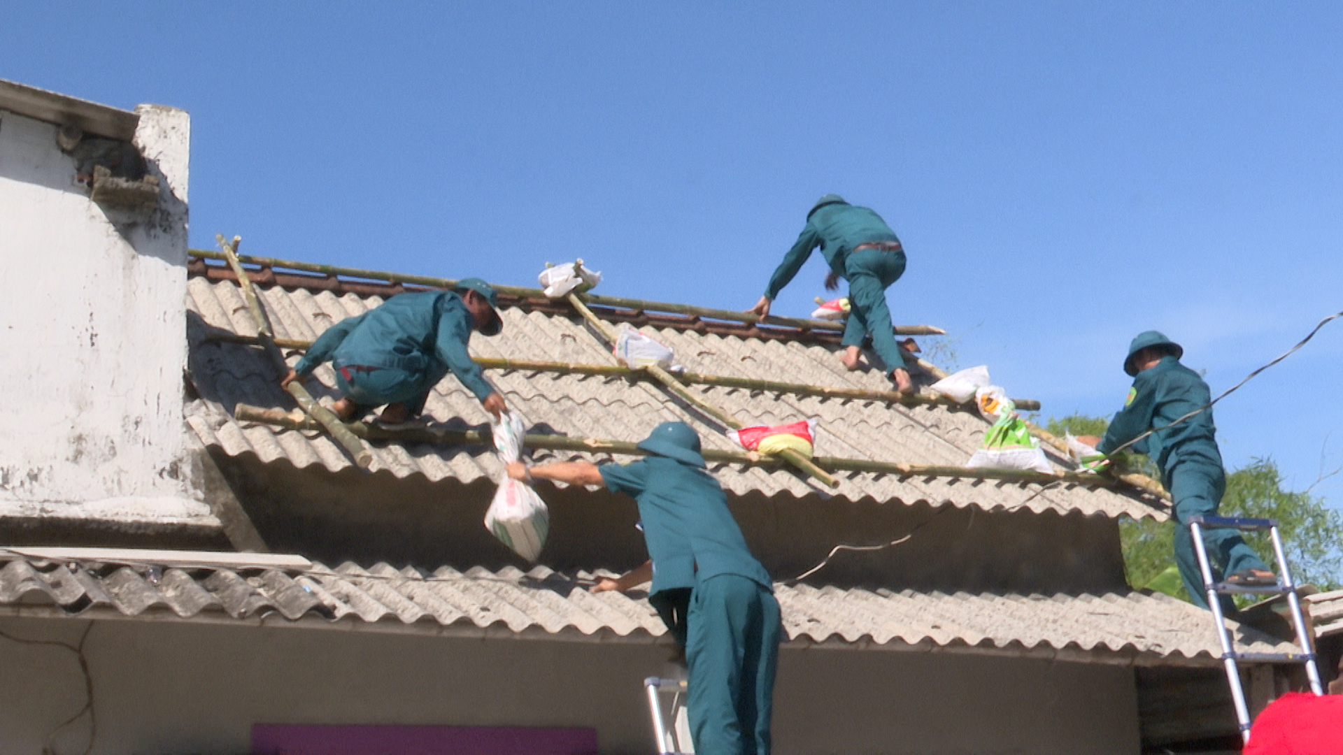 Lực lượng xung kích giúp nhân dân chằng chống nhà cửa