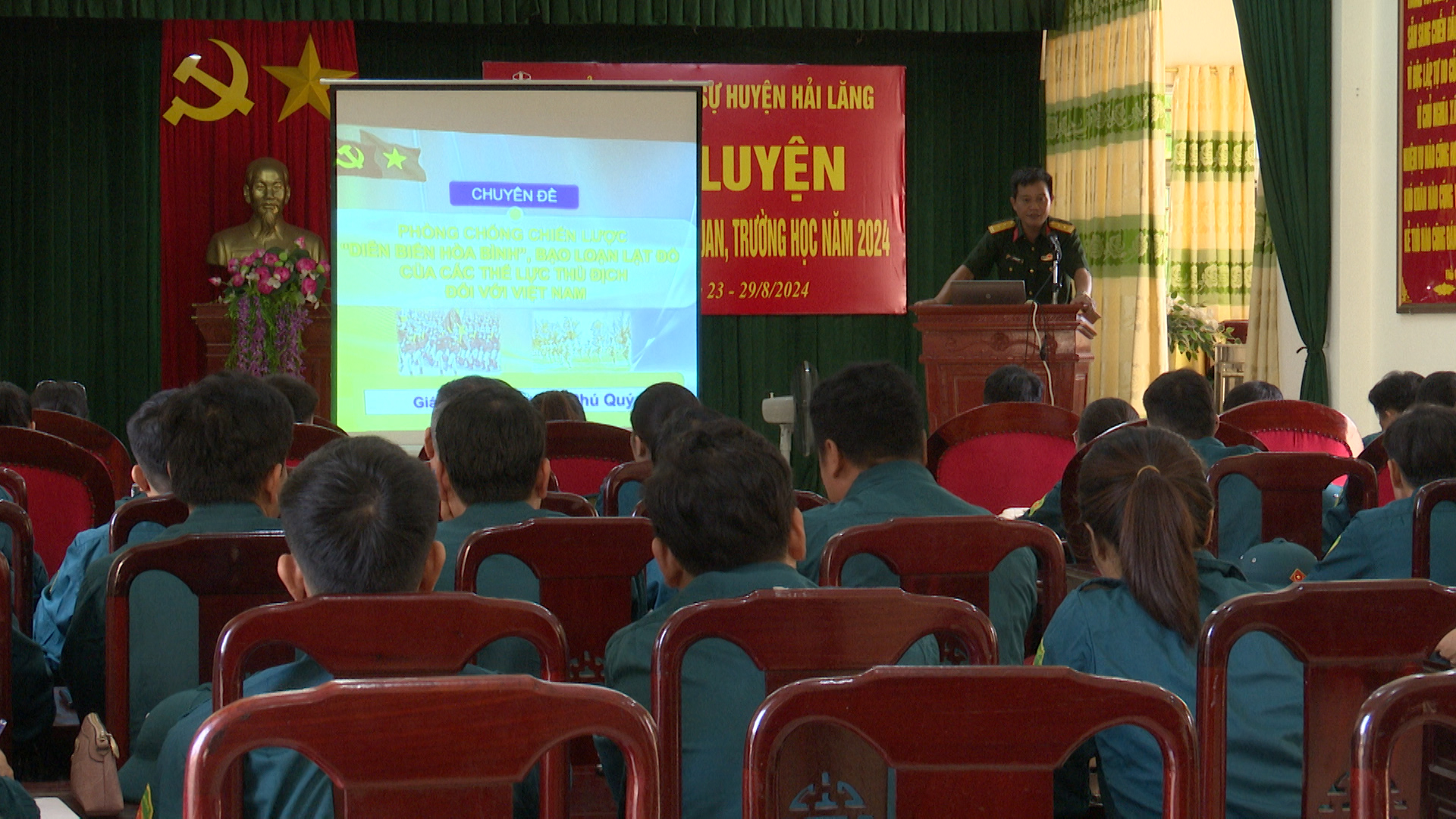Sáng ngày 23/8, Ban Chỉ huy Quân sự huyện tổ chức khai mạc mạc lớp huấn luyện lực lượng Tự vệ cơ quan, Trường THPT năm 2024. Các đồng chí trong BCH Quân sự huyện, đại diện các cơ quan, đơn vị, Ban giám hiệu các Trường THPT cùng 45 đồng chí tự vệ cùng tham gia.