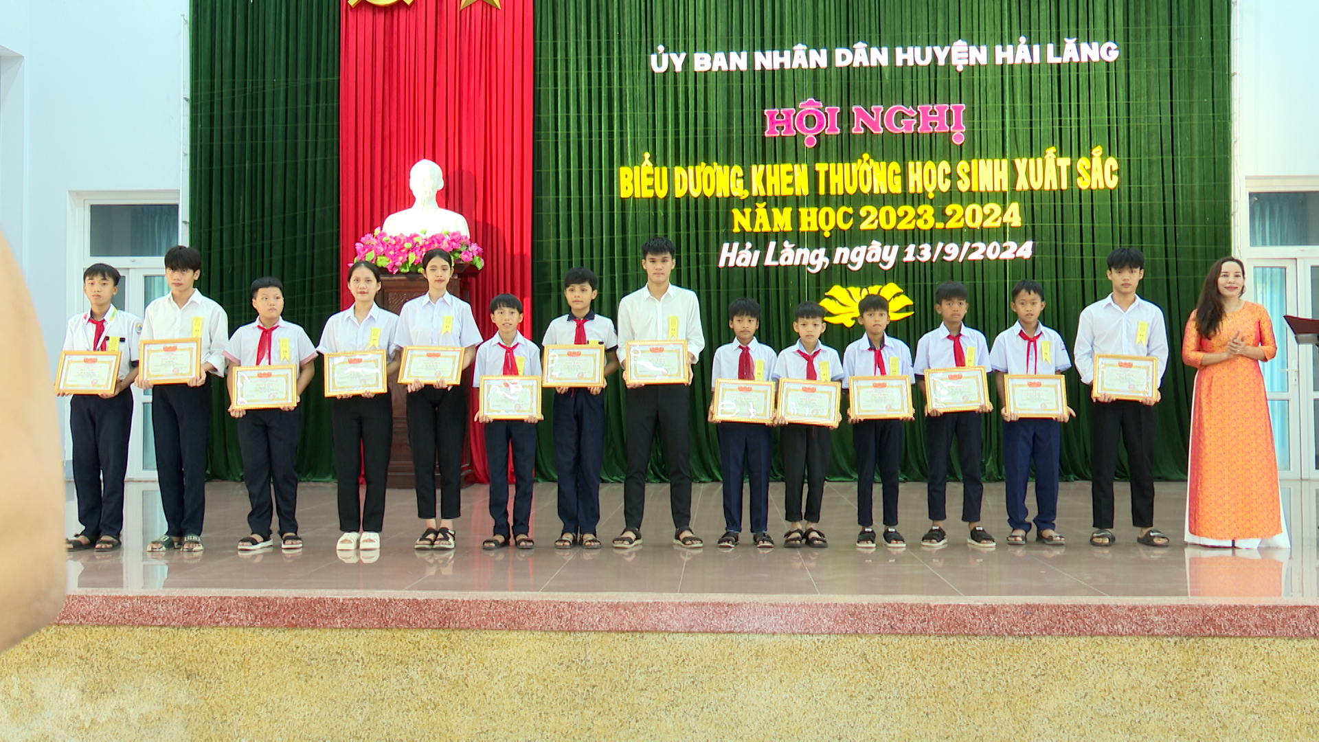 Sáng ngày 13/9, huyện Hải Lăng tổ chức hội nghị biểu dương thành tích học sinh giỏi năm học 2023-2024. Đồng chí Hoàng Thị Phương Nam-Phó Bí thư Thường trực Huyện ủy, Chủ tịch HĐND huyện cùng tham dự.