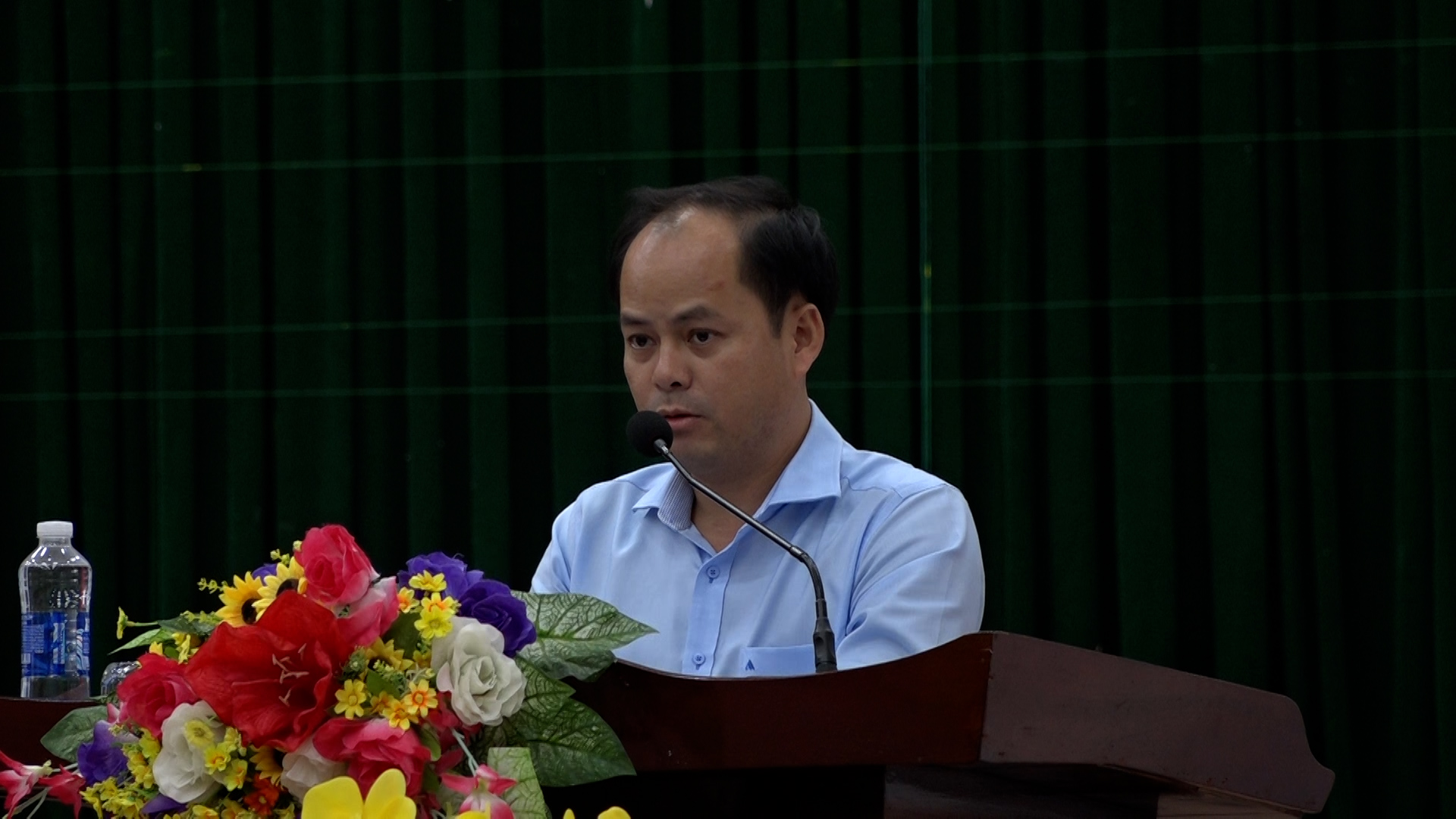 Đ/c Nguyễn Quang Hải trình bày bản kê khai tài sản cá nhân trước hội nghị cán bộ chủ chốt