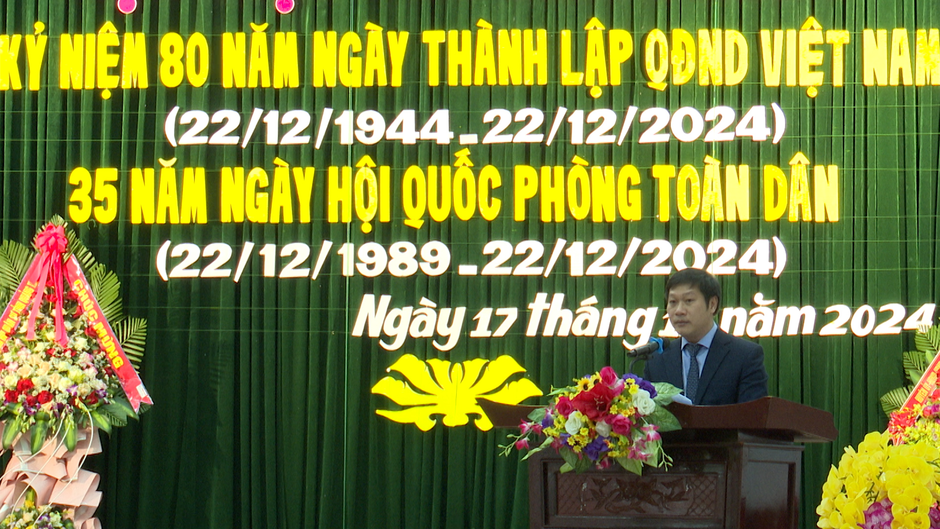 Phát biểu tại buổi gặp mặt, đồng chí Nguyễn Khánh Vũ –TUV, Bí thư Huyện ủy ghi nhận, đánh giá cao những kết quả đạt được của LLVT huyện Hải Lăng trong thời gian qua. Đ/c Bí Thư Huyện ủy nhấn mạnh “Bước vào giai đoạn mới, trong bối cảnh đất nước đang hội nhập và phát triển mạnh mẽ, nhiệm vụ bảo vệ Tổ quốc đã và đang đặt ra những yêu cầu cao hơn, nặng nề hơn. Để tạo thành một sức mạnh tổng hợp, là lá chắn thép, bảo vệ an ninh chính trị, trật tự an toàn xã hội, đồng thời tham gia tích cực vào công tác phòng chống thiên tai, tìm kiếm cứu nạn, xây dựng cơ sở vững mạnh và đồng hành cùng Nhân dân ổn định phát triển đời sống. Tôi mong muốn và tin tưởng rằng, các đồng chí cựu chiến binh, các cán bộ, chiến sỹ LLVT huyện tiếp tục phát huy truyền thống anh hùng, kiên trung, phẩm chất và hình ảnh cao đẹp của người lính “ Bộ đội Cụ Hồ”, không ngừng đổi mới, sáng tạo, nêu cao tinh thần trách nhiệm, là lực lượng tiên phong trong mọi nhiệm vụ đóng góp vào sự nghiệp xây dựng và bảo vệ quê hương. Các đồng chí hãy nhớ rằng trong thời bình thực hiện nhiệm vụ Huấn luyện, diễn tập, phòng chống thiên tai vẫn có sự hy sinh quên mình và cống hiến xương máu của rất nhiều chiến sĩ để bảo vệ Tổ quốc Việt Nam XHCN, bảo vệ sự bình yên của Nhân dân, là những minh chứng sống để thế hệ cán bộ, chiến sĩ LLVT huyện Hải Lăng nguyện đem hết sức mình để tiếp tục rèn luyện, sẵn sàng chiến đấu và sẵn sàng nhận bất cứ nhiệm vụ gì khi Đảng, Nhà nước, Quân đội và Nhân dân giao phó. Sự cống hiến sức lực và trí tuệ của các đồng chí là nền tảng góp phần xây dựng một Hải Lăng trong tương lai giàu mạnh, ổn định, phát triển và phồn vinh…”.
