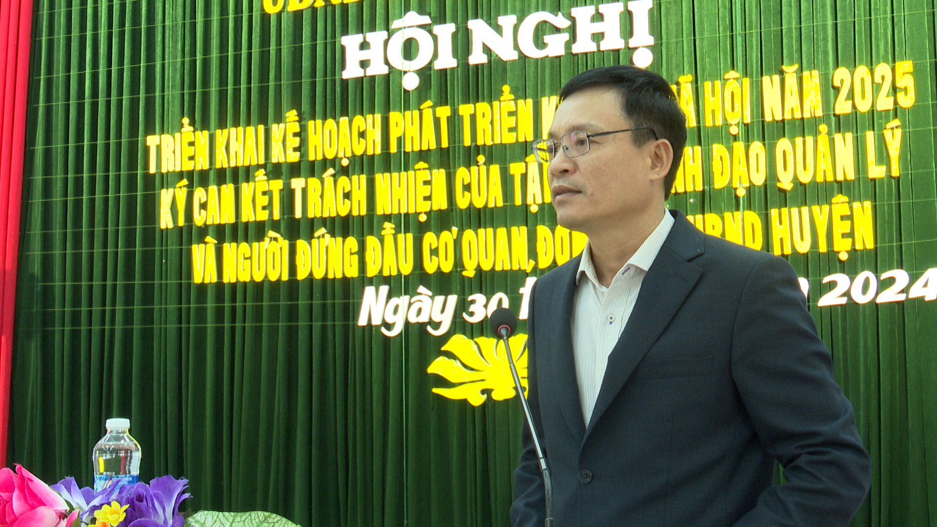 Đồng chí Chủ tịch UBND huyện đề nghị các cơ quan, ban, ngành cấp huyện và UBND các xã, thị trấn bắt tay ngay vào việc xây dựng, ban hành và triển khai kế hoạch, chương trình công tác để cụ thể hoá kế hoạch hành động, CTCT trọng tâm của UBND huyện gắn với nội dung cam kết của các ngành đã thông qua tại Hội nghị; tổ chức phân công, phân nhiệm rõ ràng trong cơ quan, đơn vị, địa phương mình, gắn với trách nhiệm của người đứng đầu về kết quả thực hiện các nhiệm vụ được giao.Trong đó, tập trung chỉ đạo sản xuất nông nghiệp thắng lợi, trước mắt là đảm bảo tốt các điều kiện và bám sát đồng ruộng để chỉ đạo gieo cấy vụ Đông Xuân 2024-2025 và các biện pháp kiểm soát dịch bệnh, chống rét trên cây trồng, vật nuôi.