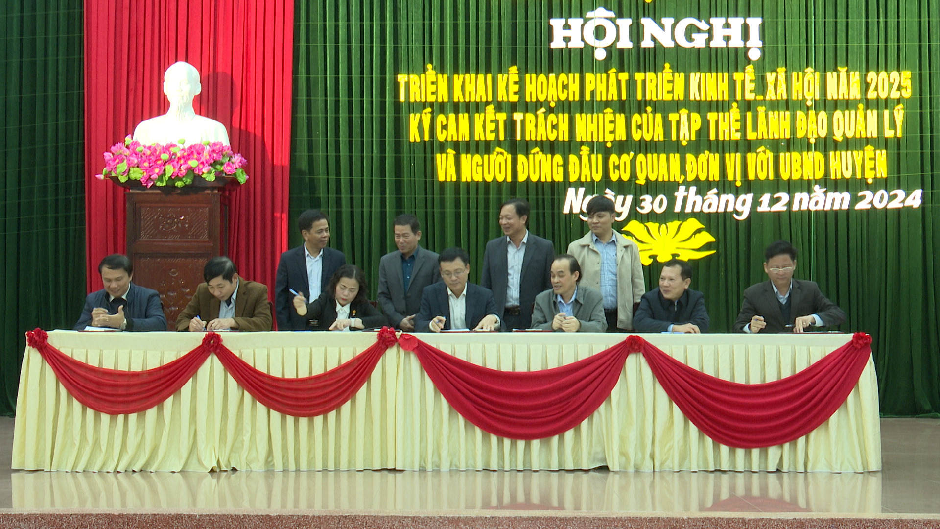 Tại hội nghị, đại diện lãnh đạo các cơ quan chuyên môn và các xã, thị trấn đã ký cam kết trách nhiệm của tập thể lãnh đạo, quản lý và người đứng đầu với UBND huyện về thực hiện các nhiệm vụ trọng tâm năm 2025.
