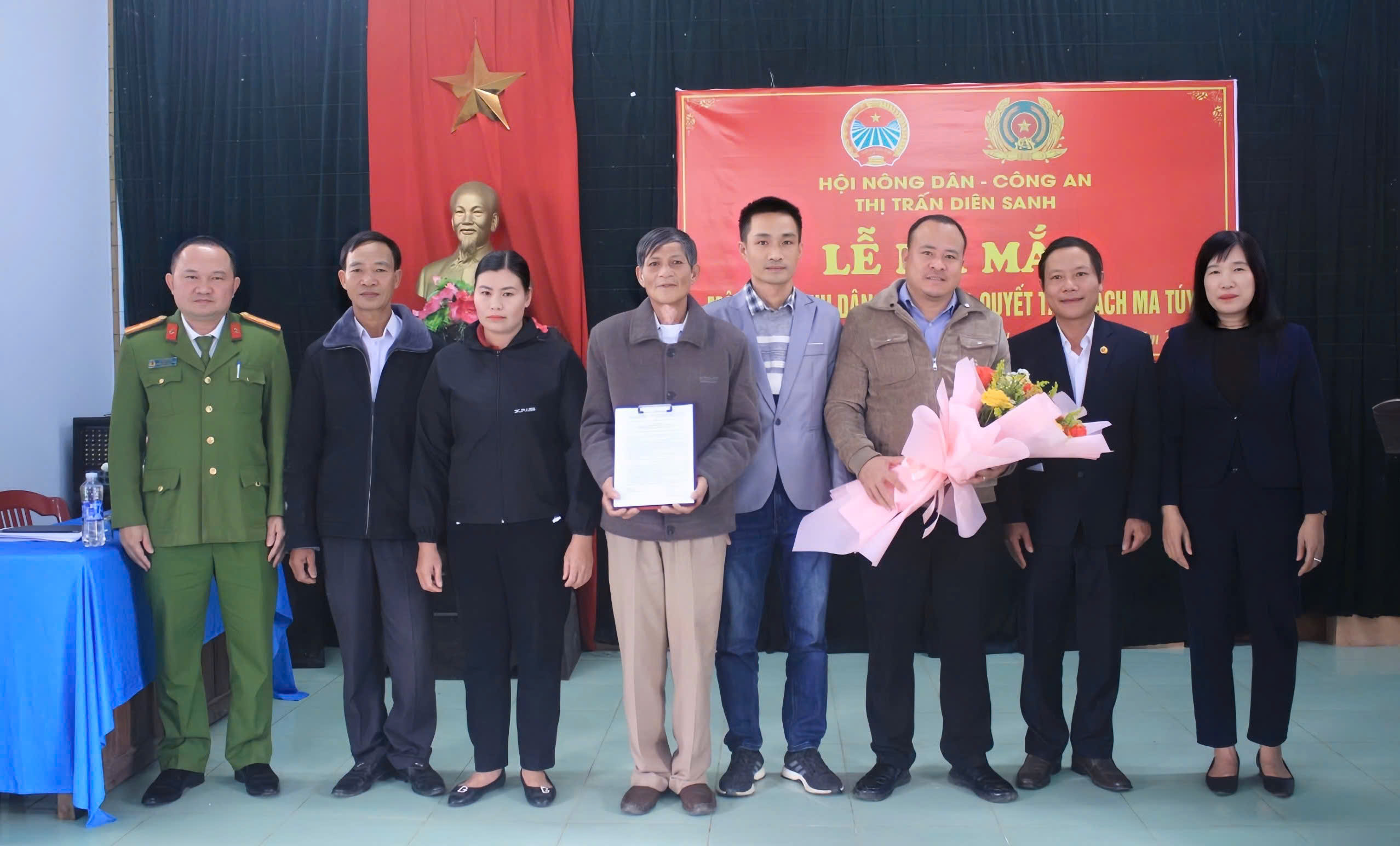 Đại diện Công an thị trấn Diên Sanh, lãnh đạo UBND thị trấn Diên Sanh trao quyết định và ra mắt mô hình