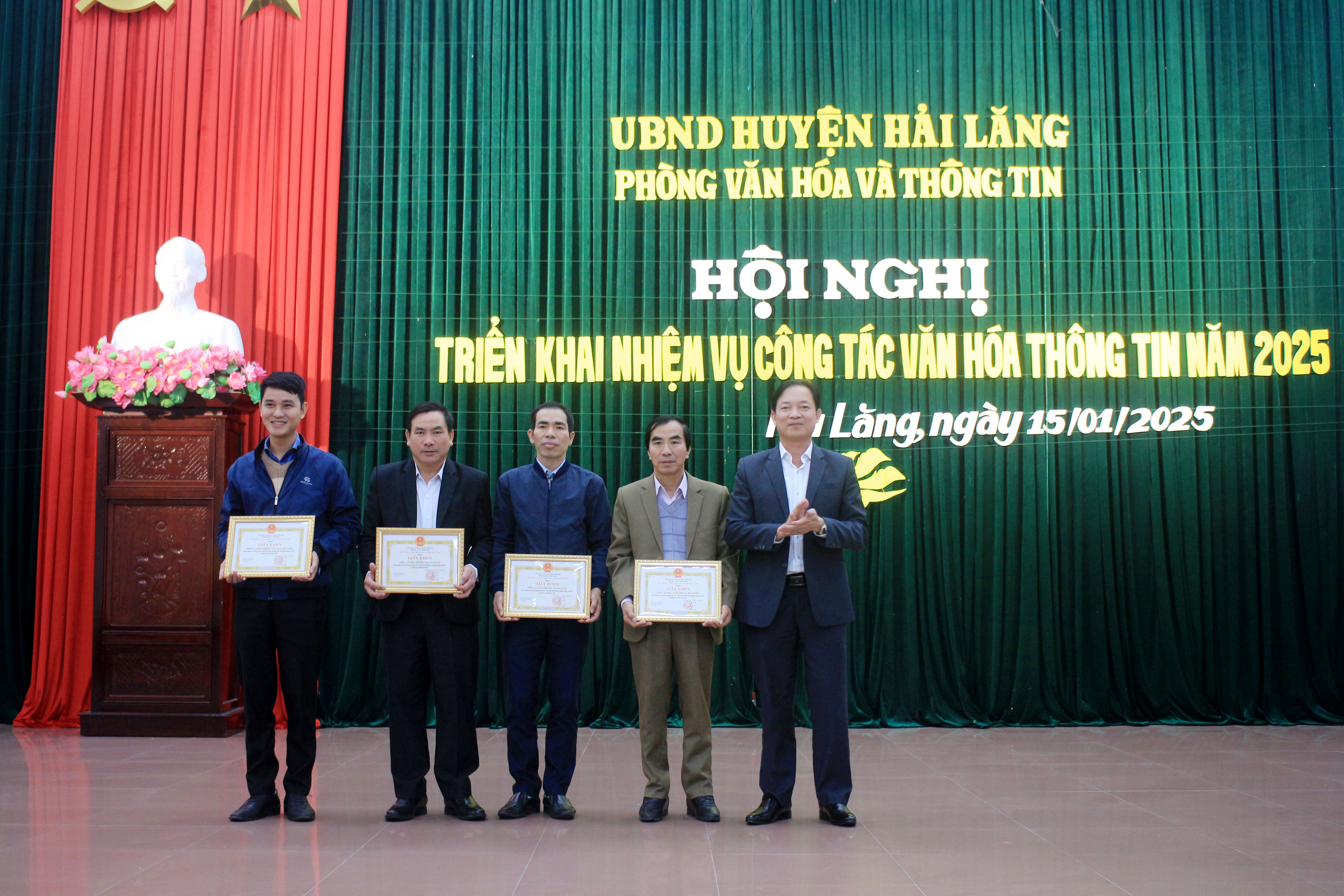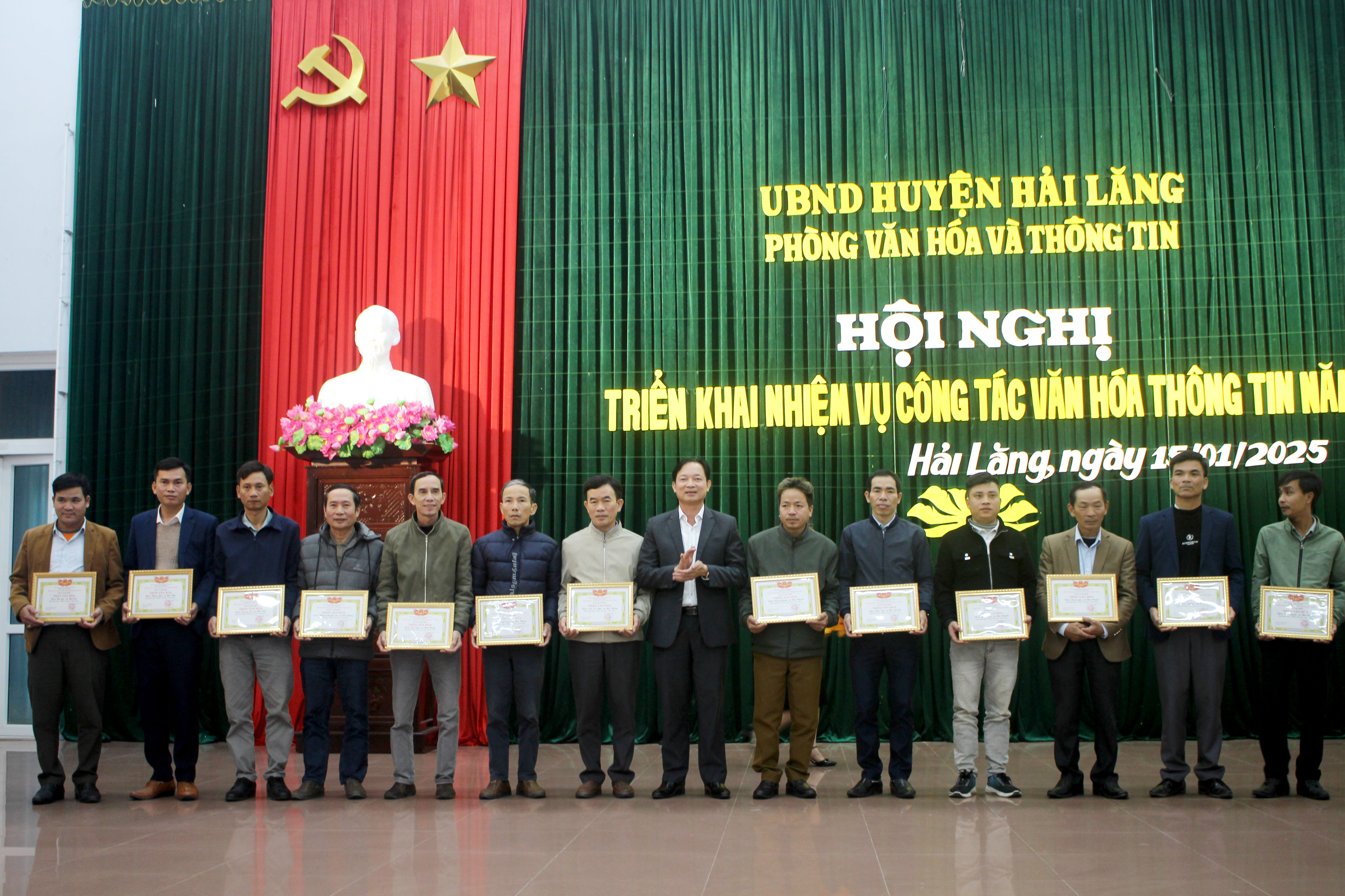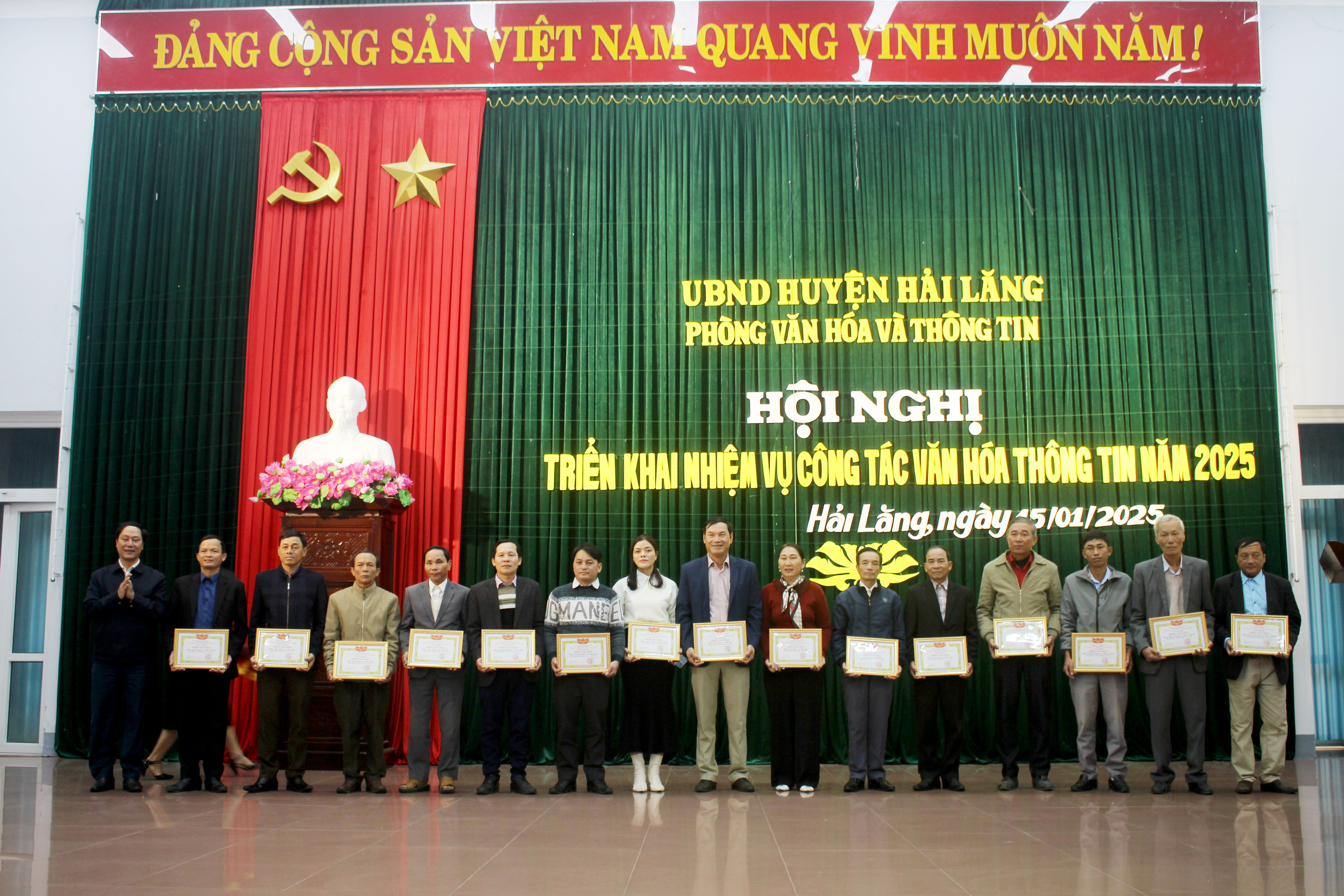 Dịp này, UBND huyện Hải Lăng đã tặng giấy khen cho 4 tập thể, 5 cá nhân có thành tích xuất sắc trong phong trào “Toàn dân đoàn kết xây dựng đời sống văn hóa” và công tác gia đình năm 2024; tặng danh hiệu cho 66 thôn, khóm văn hóa năm 2024.