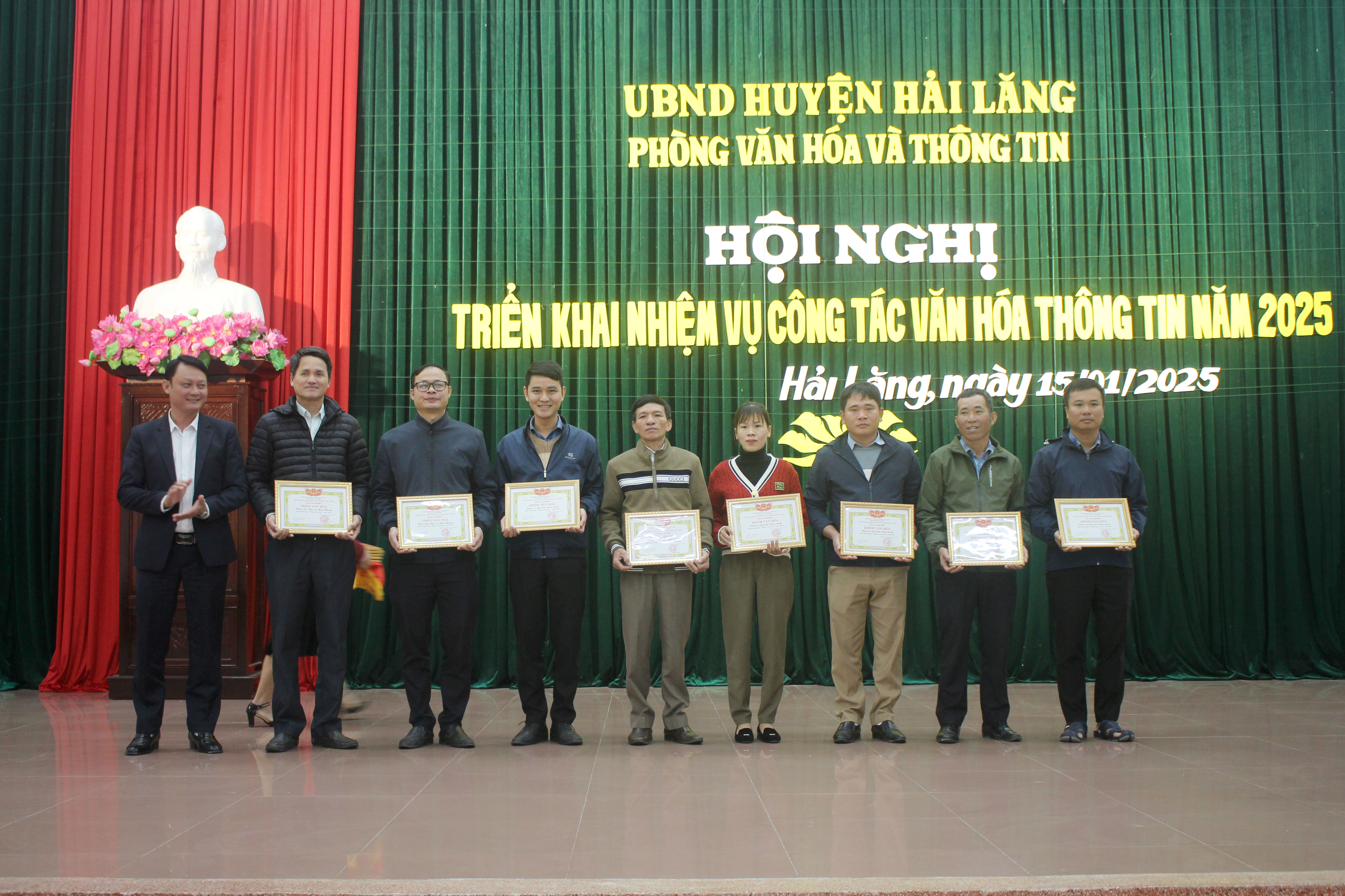 Ngày 15/1, Phòng Văn hóa và Thông tin huyện Hải Lăng tổ chức Hội nghị triển khai nhiệm vụ công tác Văn hóa thông tin năm 2025. Tham dự có đ/c Cáp Xuân Tá – HUV, Phó Chủ tịch UBND huyện.