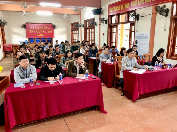 Các đại biểu xã Đakrông tham gia Hội nghị trực tuyến tại điểm cầu UBND xã