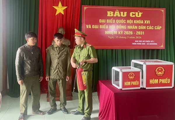 Nhằm bảo đảm tuyệt đối an toàn cho ngày hội lớn của toàn dân, Phòng Cảnh sát PCCC và CNCH đã chủ động phối hợp với Công an xã Đakrông tổ chức kiểm tra, rà soát công tác bảo đảm an toàn PCCC và CNCH tại các điểm bầu cử trên địa bàn xã. Nội dung kiểm tra tập trung vào các điều kiện an toàn PCCC tại khu vực bỏ phiếu; việc bố trí, trang bị phương tiện chữa cháy ban đầu; kiểm tra hệ thống điện, nguồn lửa, nguồn nhiệt; đồng thời hướng dẫn kỹ năng sử dụng bình chữa cháy xách tay, cách xử lý khi xảy ra sự cố cháy, nổ, tổ chức thoát nạn an toàn, bảo vệ tài liệu, hòm phiếu và hỗ trợ người dân trong các tình huống khẩn cấp; công tác tổ chức lực lượng, phương tiện chữa cháy tại chỗ sẵn sàng xử lý kịp thời khi có tình huống xảy ra. Thông qua hoạt động kiểm tra, lực lượng chức năng góp phần nâng cao ý thức, trách nhiệm của các tổ chức, cá nhân trong công tác phòng cháy, chữa cháy; chủ động phòng ngừa, hạn chế thấp nhất nguy cơ cháy nổ, bảo đảm an toàn tuyệt đối cho cử tri và các hoạt động phục vụ bầu cử.