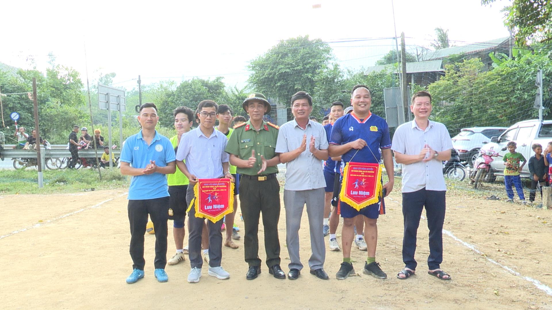 Đồng chí Đoàn Quang Anh trao cờ lưu niệm cho hai đội bóng