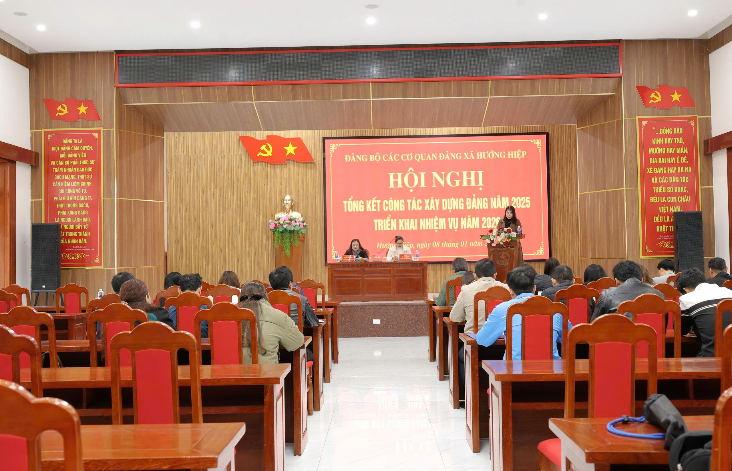 Chiều ngày 08/01/2026, Đảng ủy các cơ quan Đảng xã Hướng Hiệp tổ chức Hội nghị tổng kết công tác lãnh đạo, chỉ đạo năm 2025 và triển khai phương hướng, nhiệm vụ năm 2026. Dự và chỉ đạo Hội nghị có đồng chí Thái Ngọc Châu, Bí thư Đảng ủy, Chủ tịch HĐND xã.