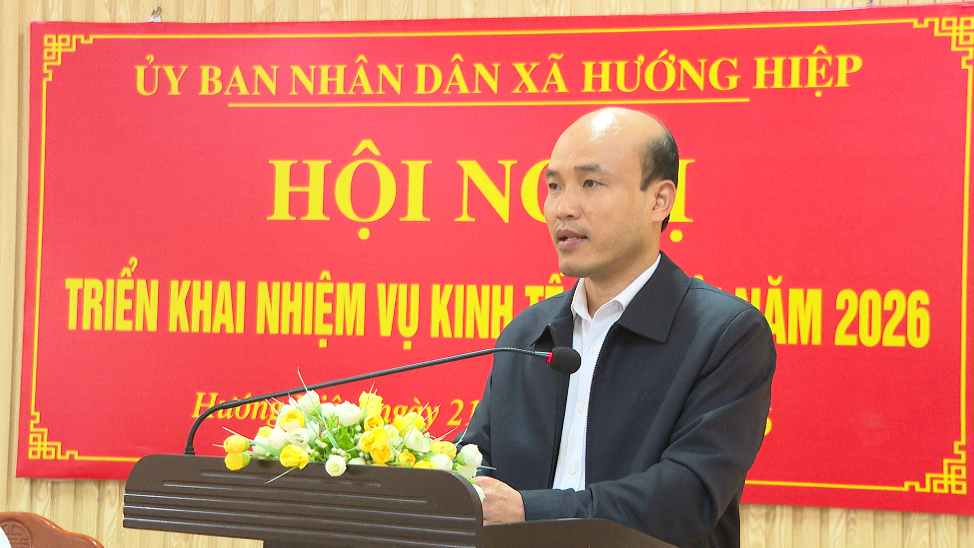 Ngày 21/01, UBND xã Hướng Hiệp tổ chức Hội nghị triển khai nhiệm vụ phát triển kinh tế - xã hội năm 2026. Dự hội nghị có đồng chí Thái Ngọc Châu - Bí thư Đảng ủy, Chủ tịch HĐND xã; đại diện Thường trực HĐND, UBMTTQVN xã; lãnh đạo các cơ quan, đơn vị, các thôn, khóm trên địa bàn xã. Tập thể lãnh đạo UBND xã chủ trì hội nghị.