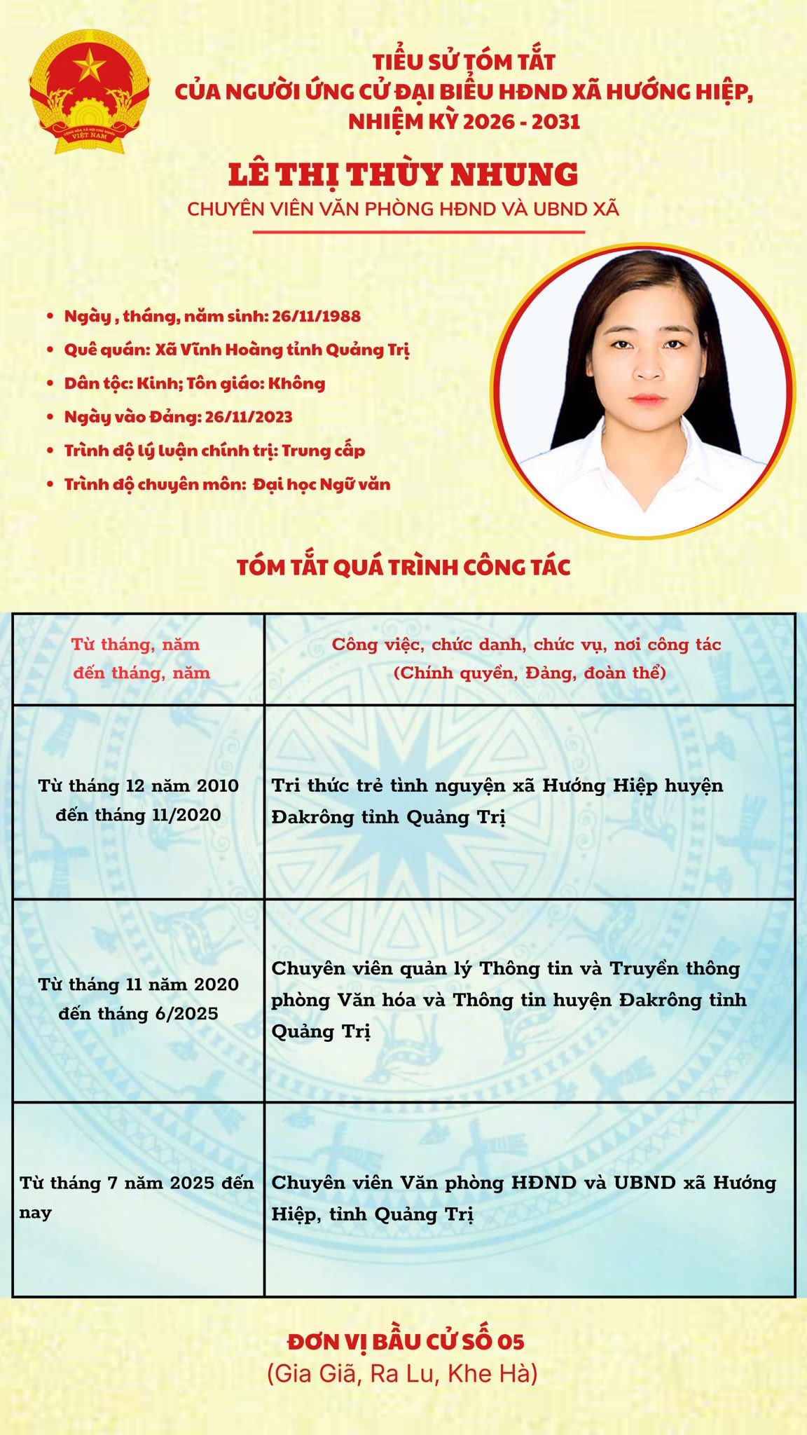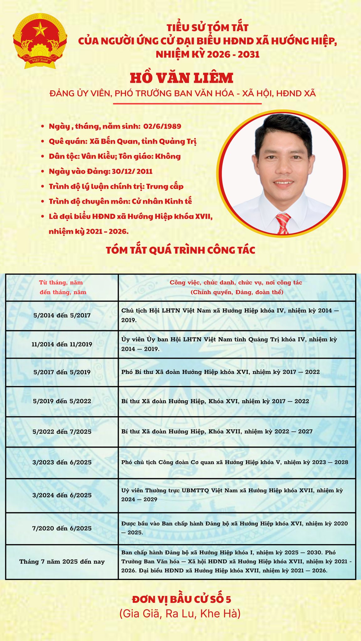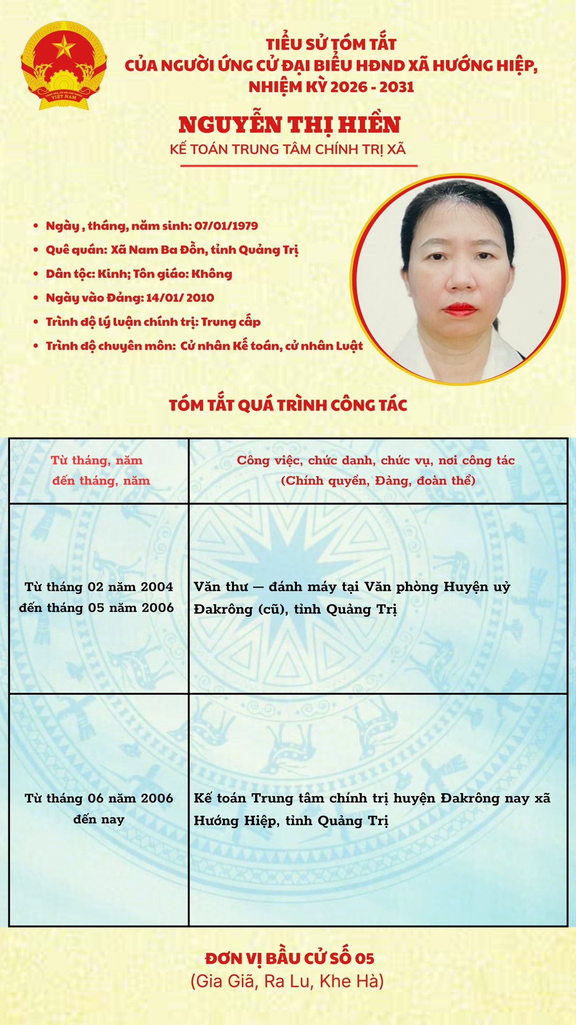 Danh sách người ứng cử đại biểu HĐND xã Hướng Hiệp nhiệm kỳ 2026-2031 tại đơn vị bầu cử số 05