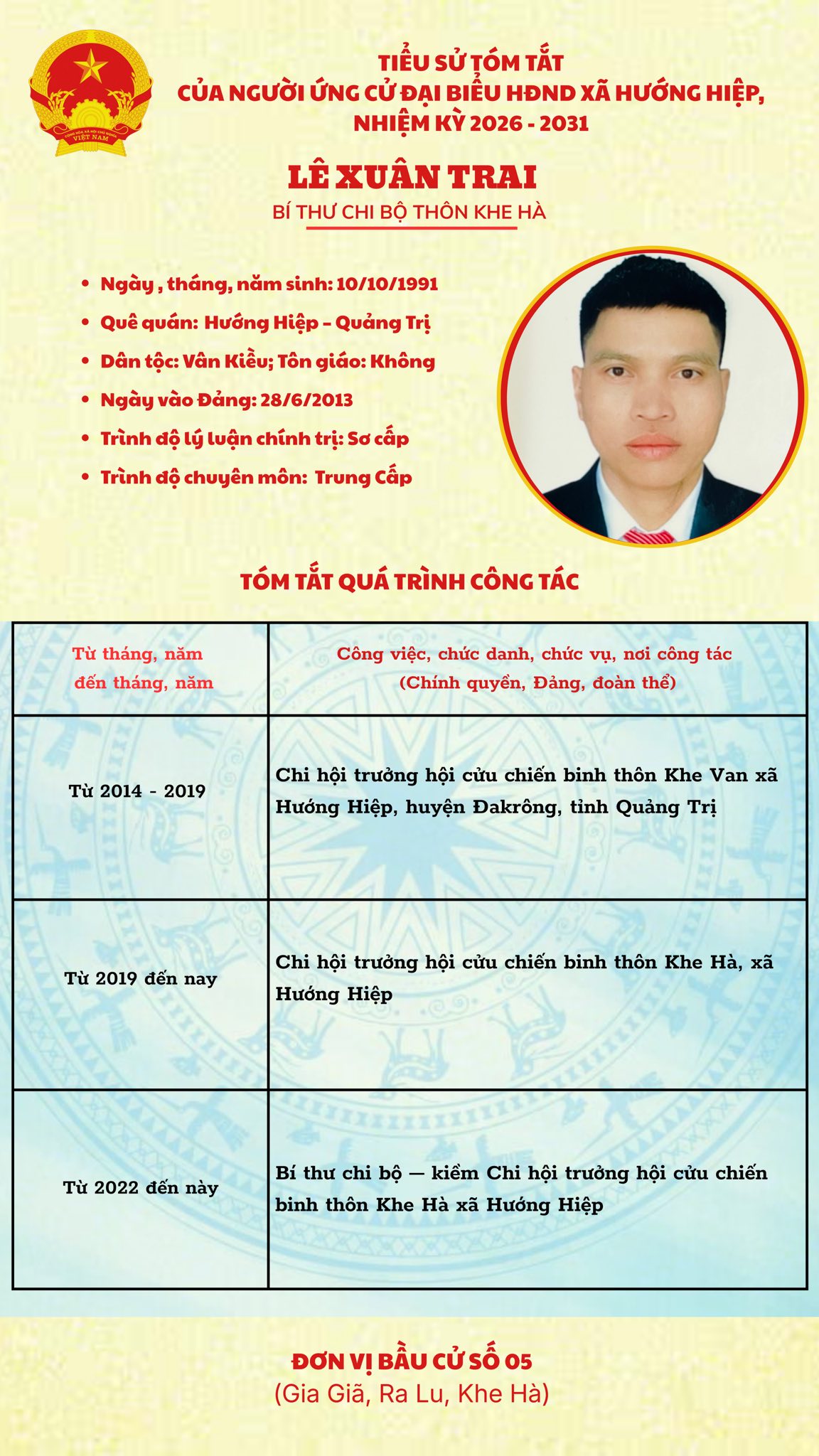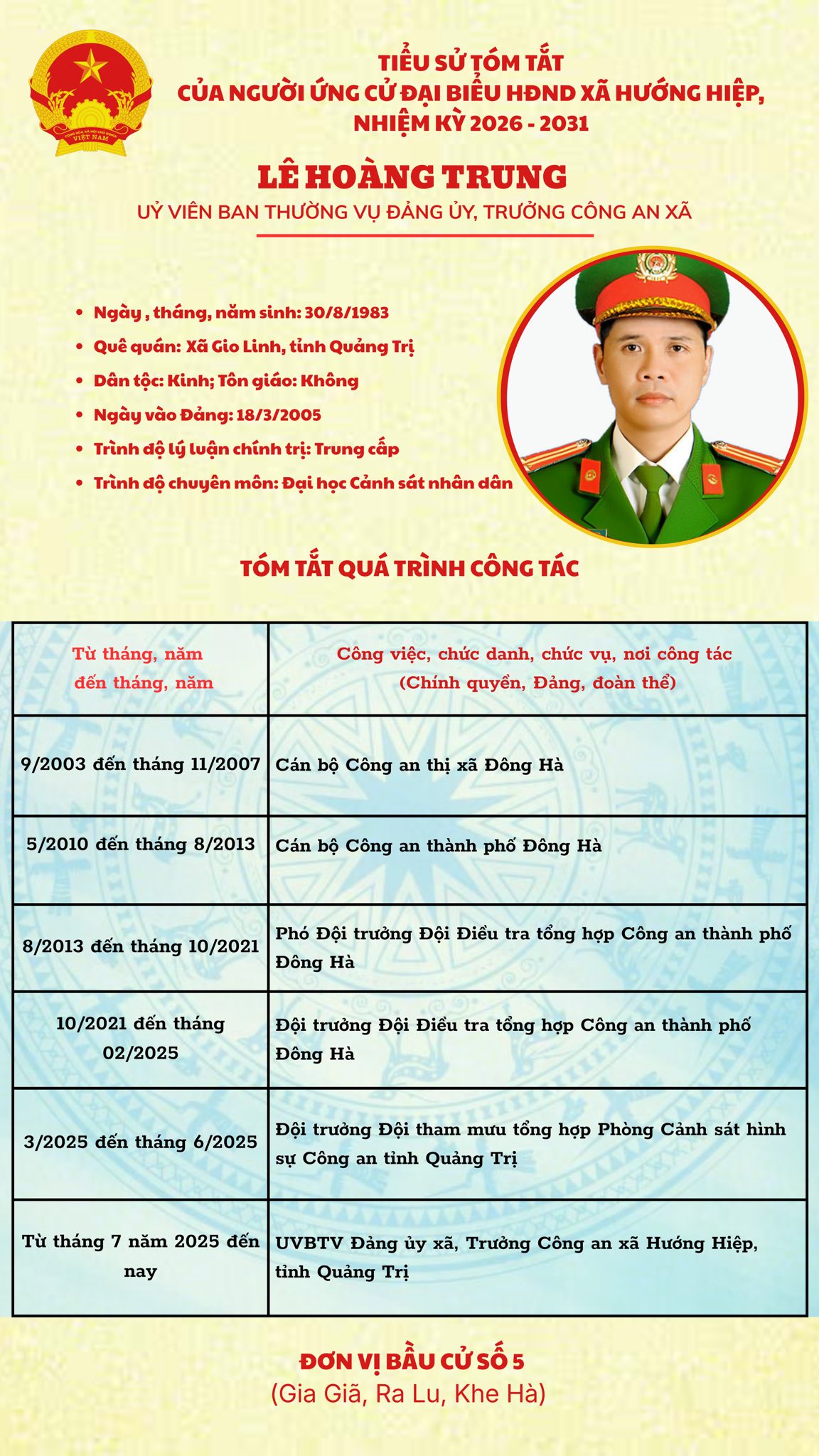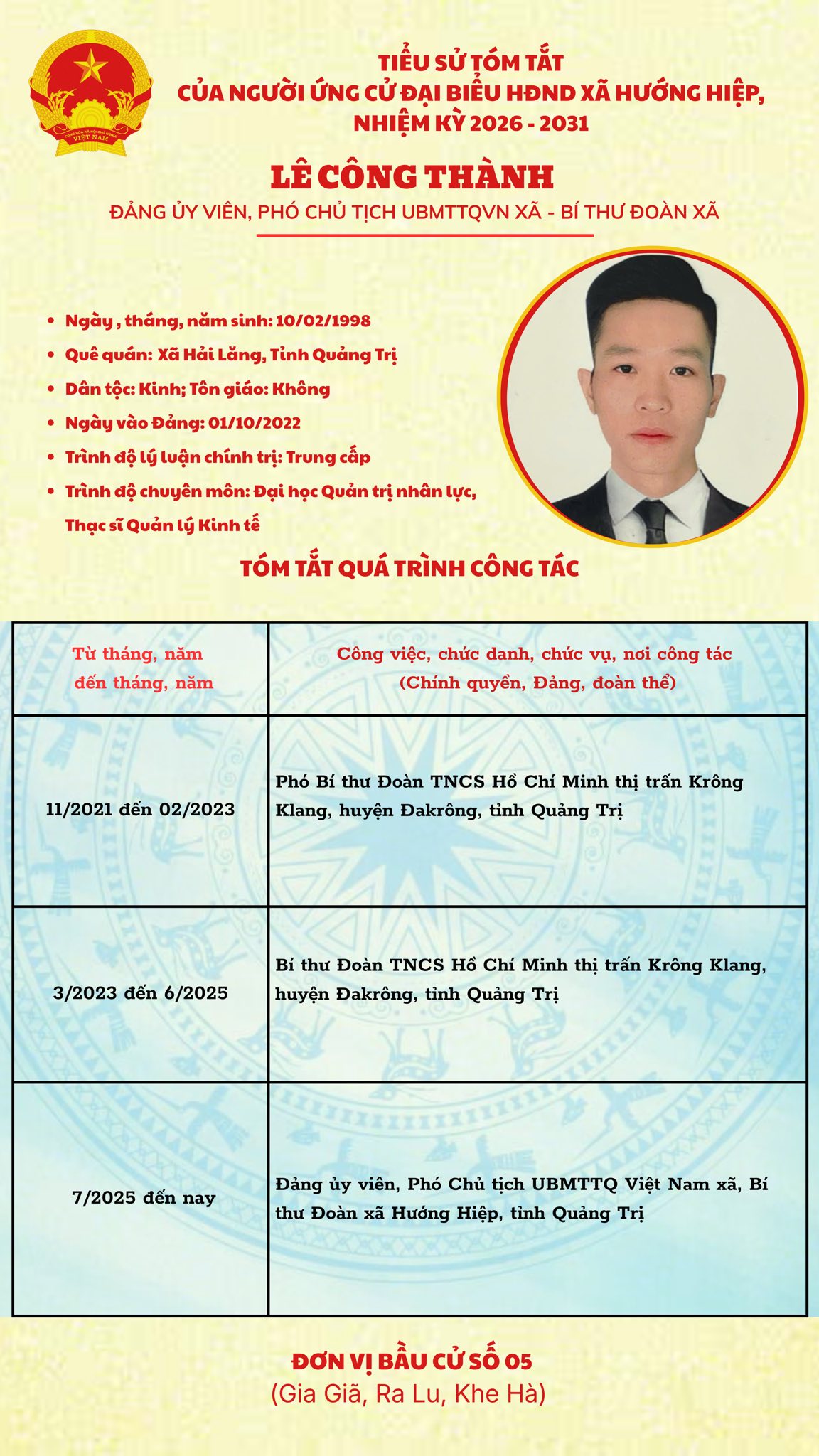 Danh sách người ứng cử đại biểu HĐND xã Hướng Hiệp nhiệm kỳ 2026-2031 tại đơn vị bầu cử số 05