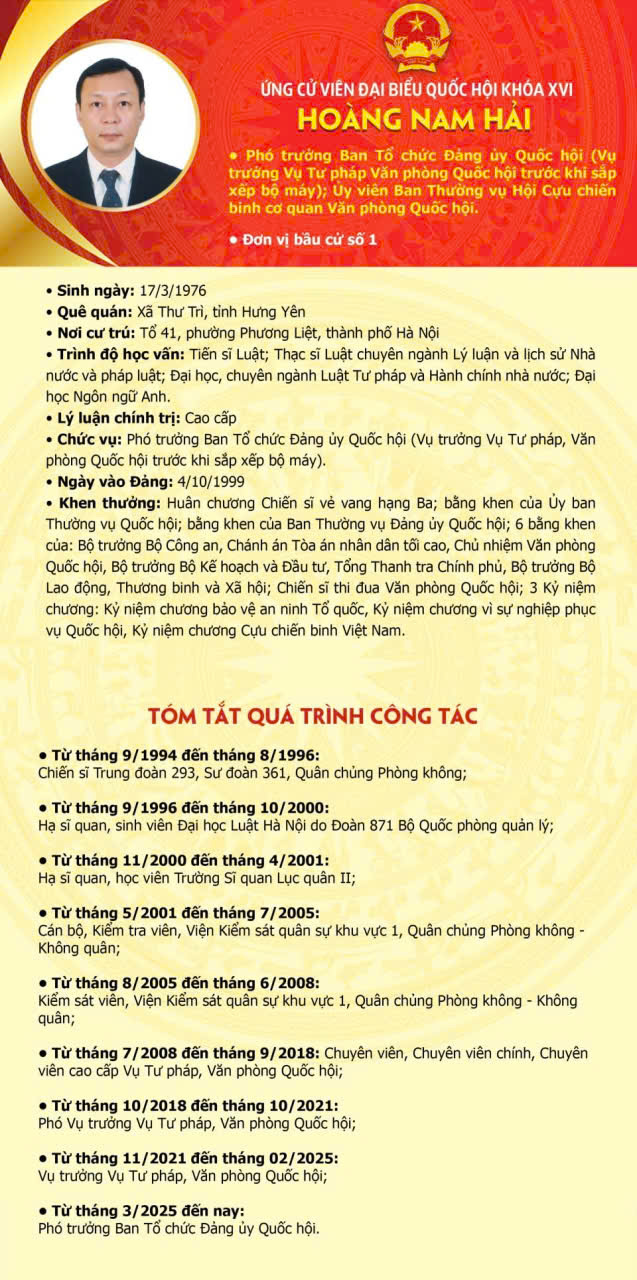 Danh sách và tiểu sử những người ứng cử Đại biểu Quốc hội khóa XVI đơn vị Bầu cử số 1