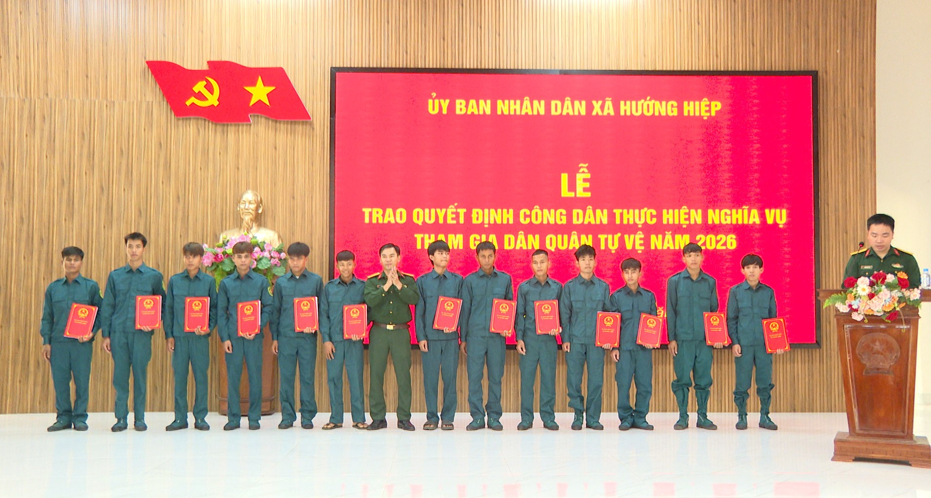 Tại buổi lễ, BCH Quân sự xã Hướng Hiệp đã công bố và trao quyết định công dân thực hiện nghĩa vụ tham gia Dân quân Tự vệ năm 2026 cho 37 công dân trên địa bàn. Đây đều là những công dân trẻ tiêu biểu, có đủ phẩm chất chính trị, đạo đức, sức khỏe và tinh thần trách nhiệm, sẵn sàng tham gia thực hiện nhiệm vụ quốc phòng - an ninh tại địa phương.