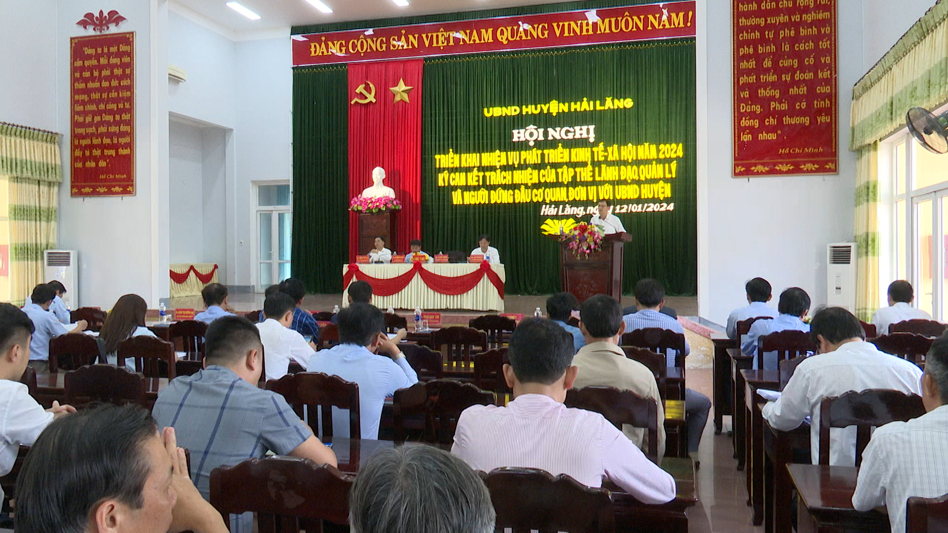 UBND huyện Hải Lăng vừa tổ chức hội nghị triển khai nhiệm vụ phát triển KT-XH năm 2024 và tổ chức ký cam kết trách nhiệm của tập thể lãnh đạo, quản lý và người đứng đầu với UBND huyện về thực hiện các nhiệm vụ trọng tâm năm 2024.
