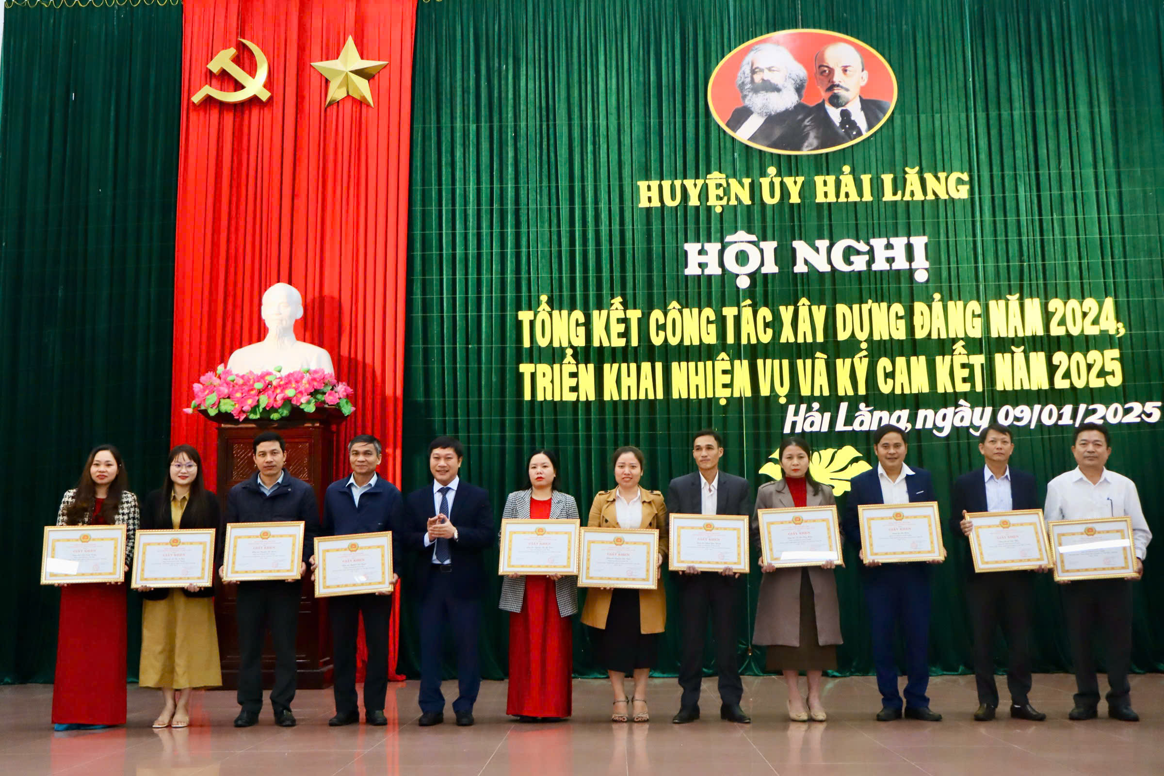 Dịp này, Huyện ủy Hải Lăng đã tặng Giấy khen cho nhiều tập thể, cá nhân có thành tích xuất sắc trong công tác xây dựng Đảng năm 2024.