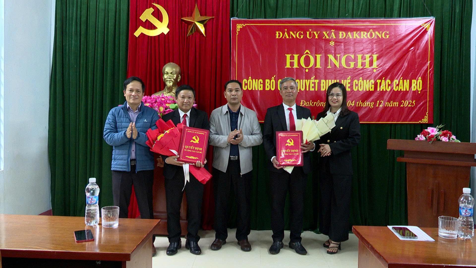 Tại Hội nghị, Ban tổ chức đã công bố Quyết định của Tỉnh ủy Quảng Trị chuẩn y Ủy viên Ủy ban ban thường vụ Đảng ủy xã Đakrông nhiệm kỳ 2025 – 2030 đối với đồng chí Hồ Văn Chiến; Quyết định bổ nhiệm giữ chức vụ Phó trưởng ban xây dựng Đảng, Đảng ủy xã Đakrông đối với đồng chí Lê Hữu Tuấn, Chuyên viên ban xây dựng Đảng.
