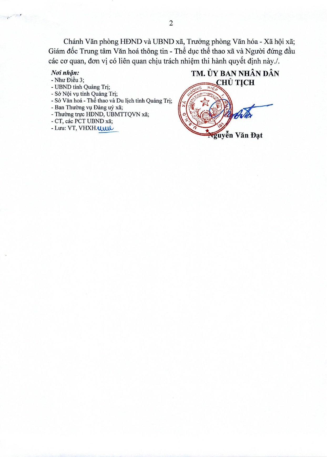 Quyết định giải thể Trung tâm VHTT-TDTT xã Hướng Hiệp