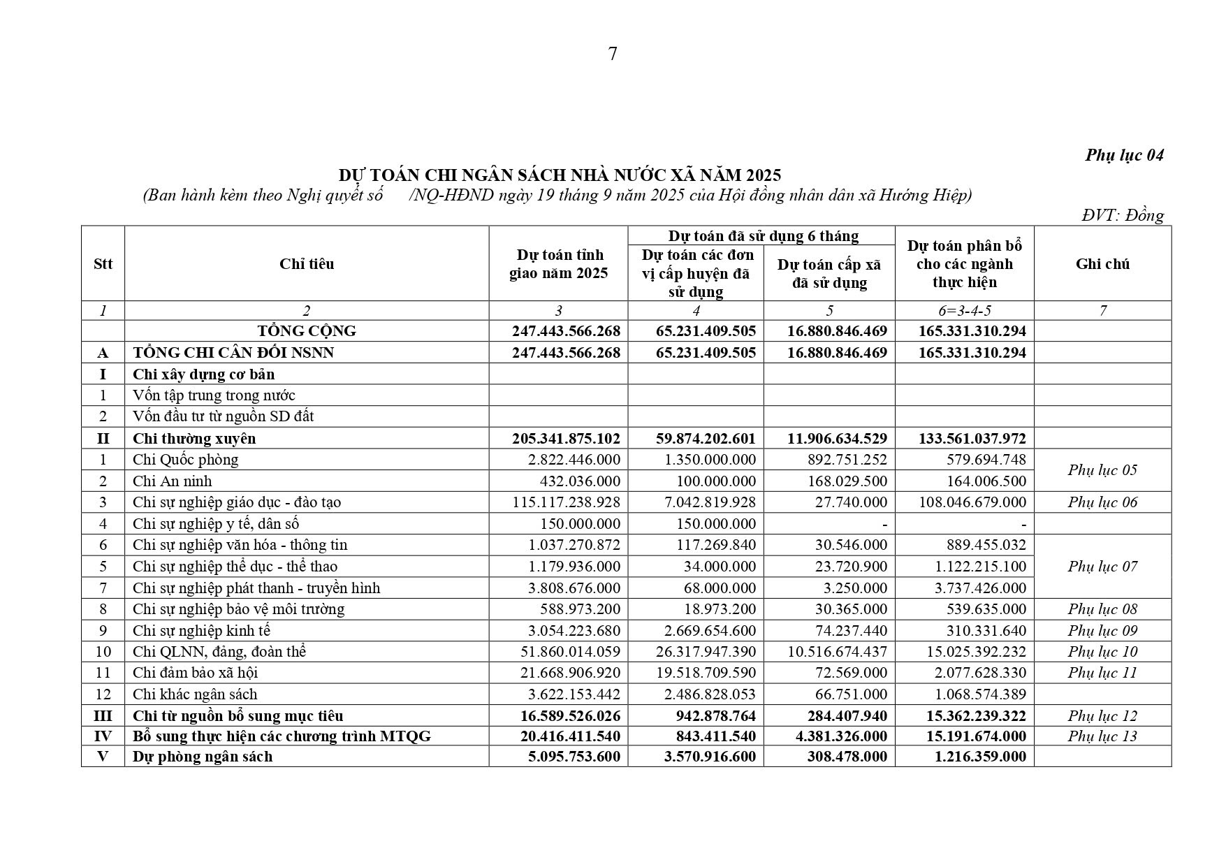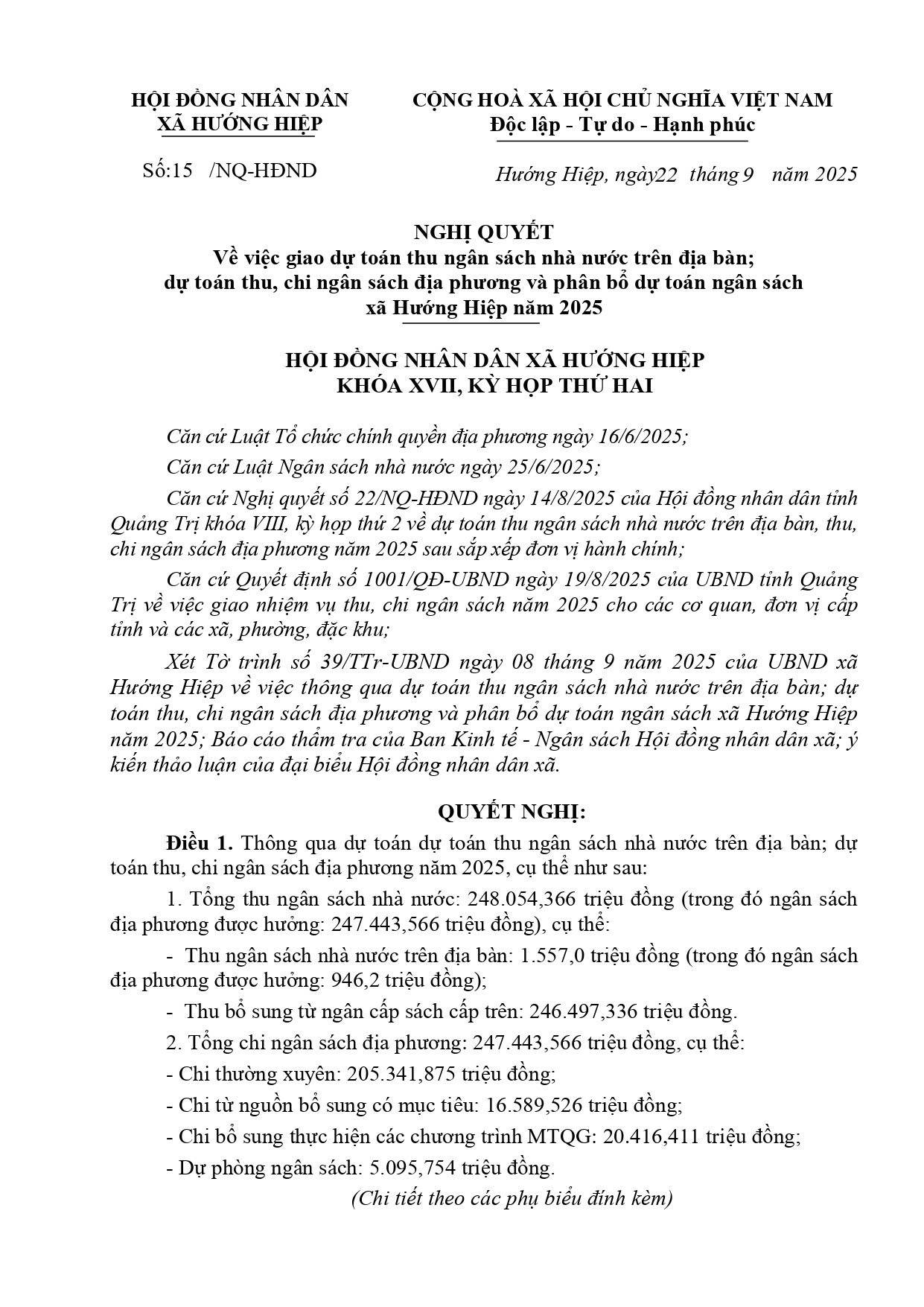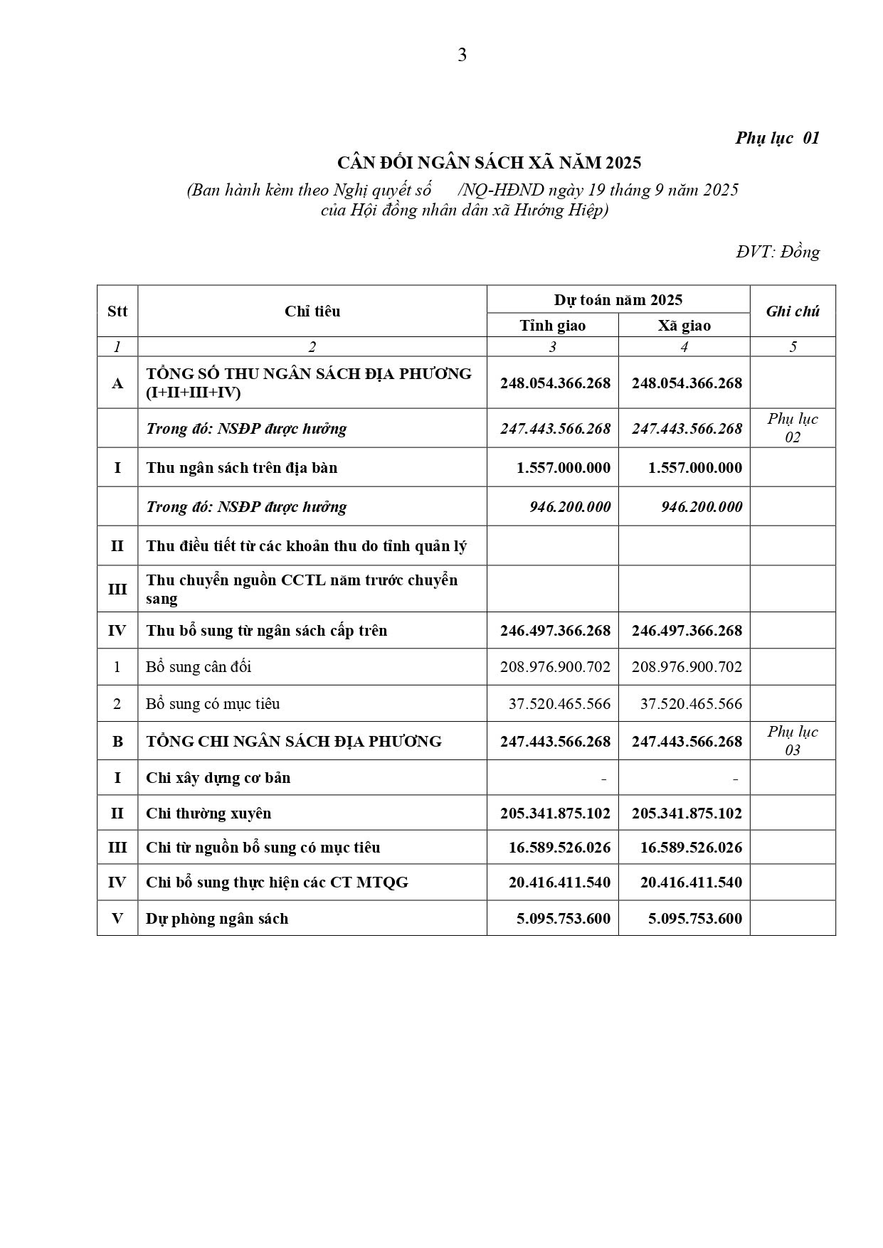 Nghị quyết giao dự toán thu chi ngân sách năm 2025