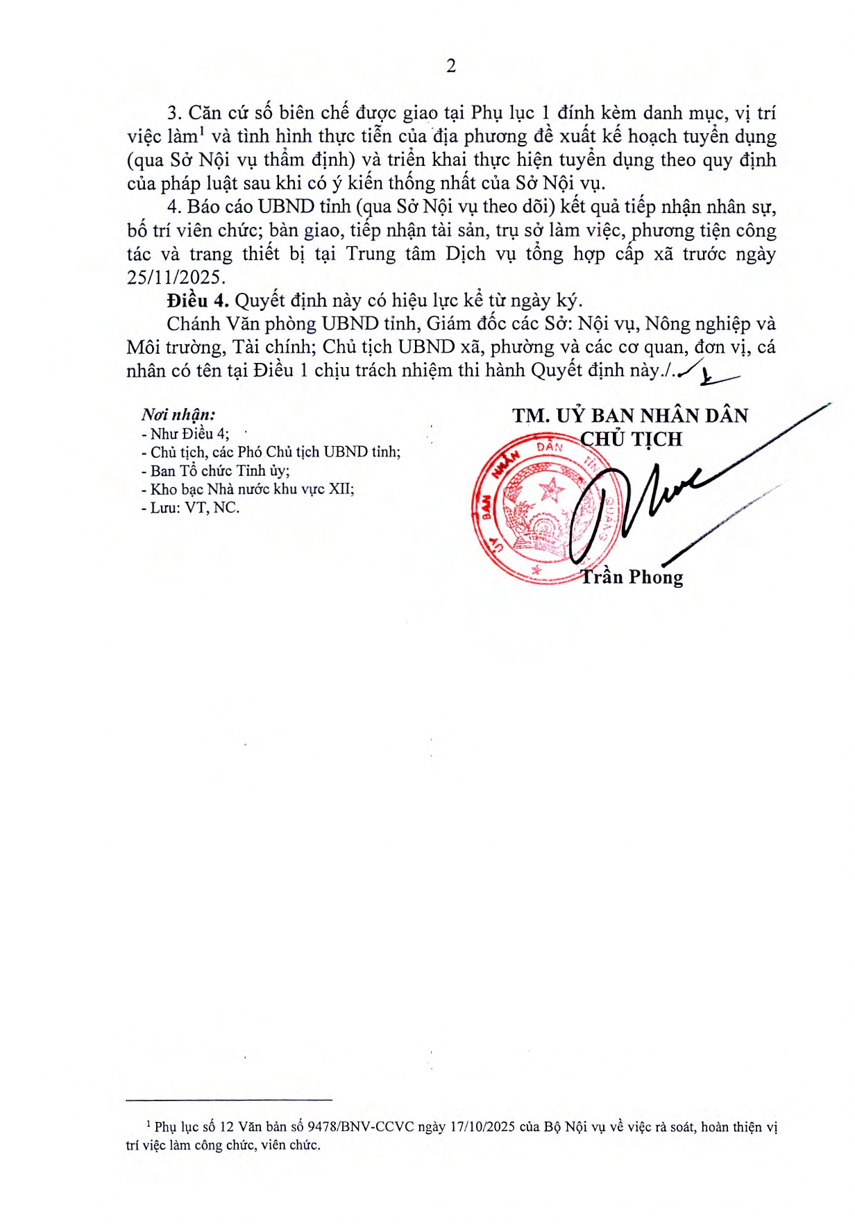 Quyết định của UBND tỉnh về giao biên chế và bố trí nhân sự tại Trung tâm Dịch vụ tổng hợp cấp xã
