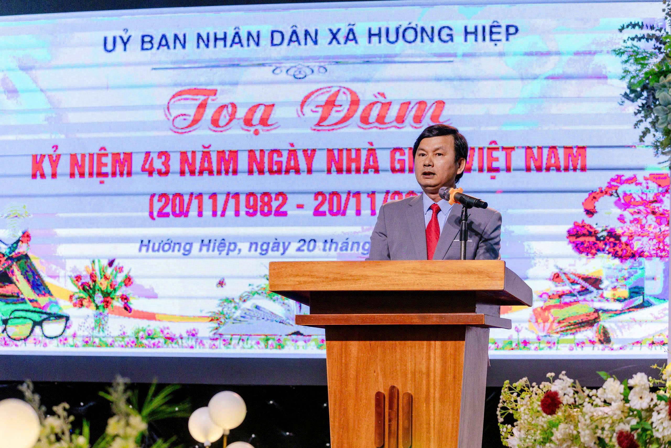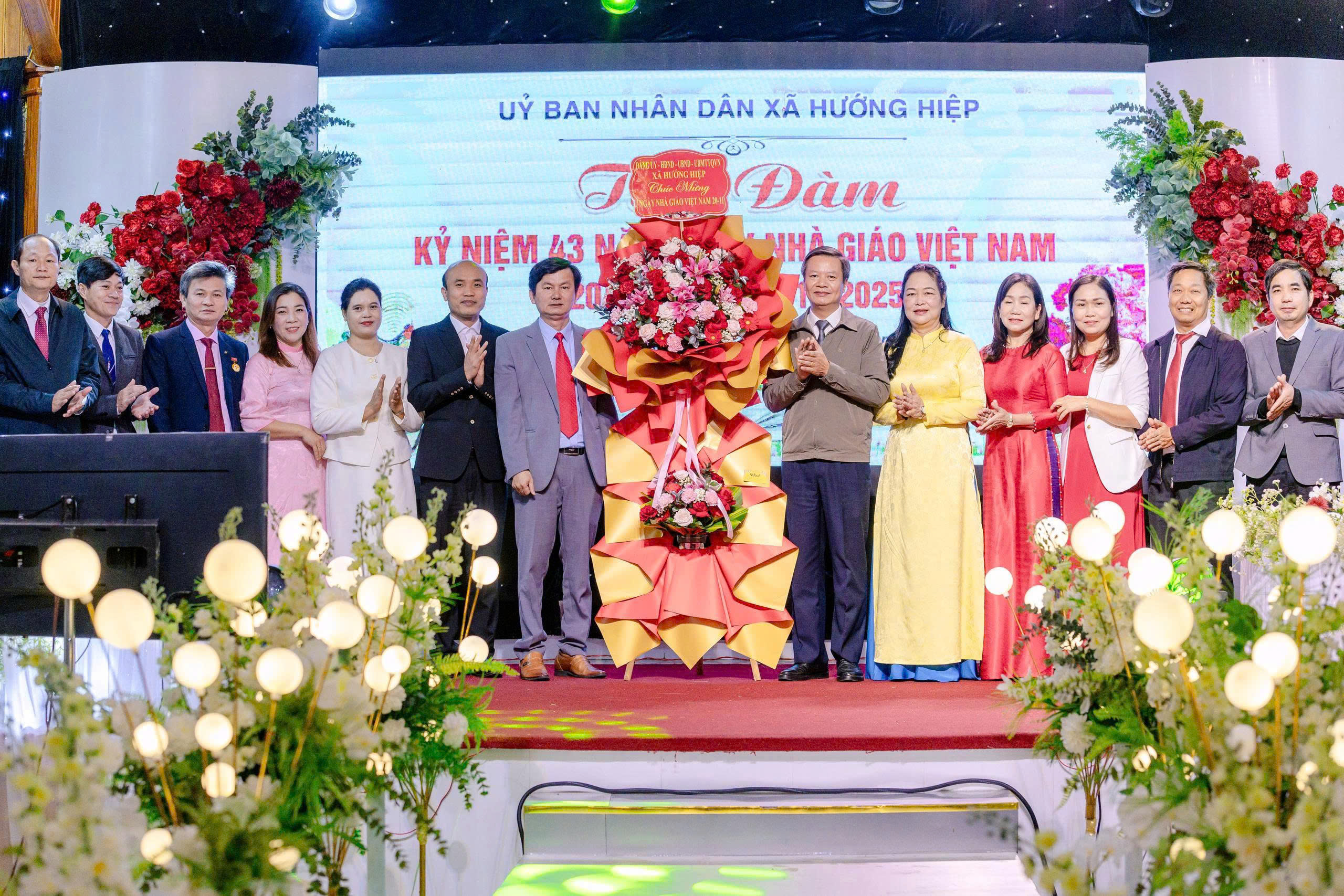 Nhân dịp này, Đảng ủy - HĐND - UBND - Ủy ban MTTQ Việt Nam xã Hướng Hiệp trân trọng gửi lời chúc mừng tốt đẹp nhất đến toàn thể các thầy giáo, cô giáo đã và đang công tác trên địa bàn; đồng thời ghi nhận, tri ân những đóng góp thầm lặng nhưng vô cùng ý nghĩa của mỗi thầy cô cho sự nghiệp giáo dục của quê hương. Kỷ niệm 43 năm Ngày Nhà giáo Việt Nam cũng là dịp để mỗi gia đình, mỗi học sinh và toàn xã hội chung tay chăm lo cho giáo dục; tiếp tục tạo điều kiện để các nhà trường thực hiện hiệu quả nhiệm vụ năm học 2025-2026; xây dựng môi trường giáo dục an toàn, thân thiện, kỷ cương, chất lượng; góp phần đào tạo thế hệ tương lai vừa có tri thức, vừa có nhân cách, góp phần vào công cuộc xây dựng xã Hướng Hiệp ngày càng giàu đẹp, văn minh.