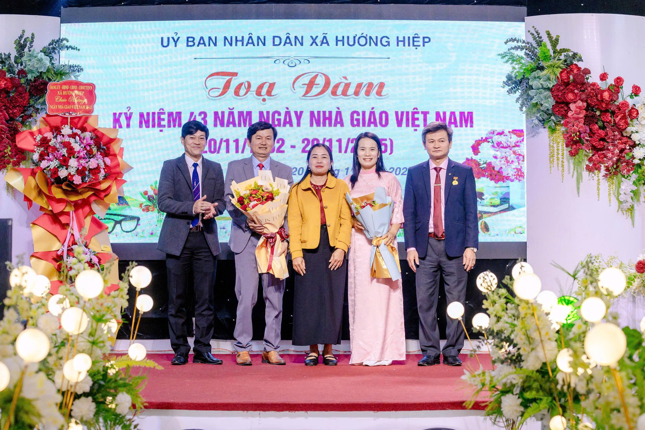 Lãnh đạo Đảng ủy - HĐND - UBND - Ủy ban MTTQ Việt Nam xã Hướng Hiệp tặng hoa chúc mừng các thầy cô giáo